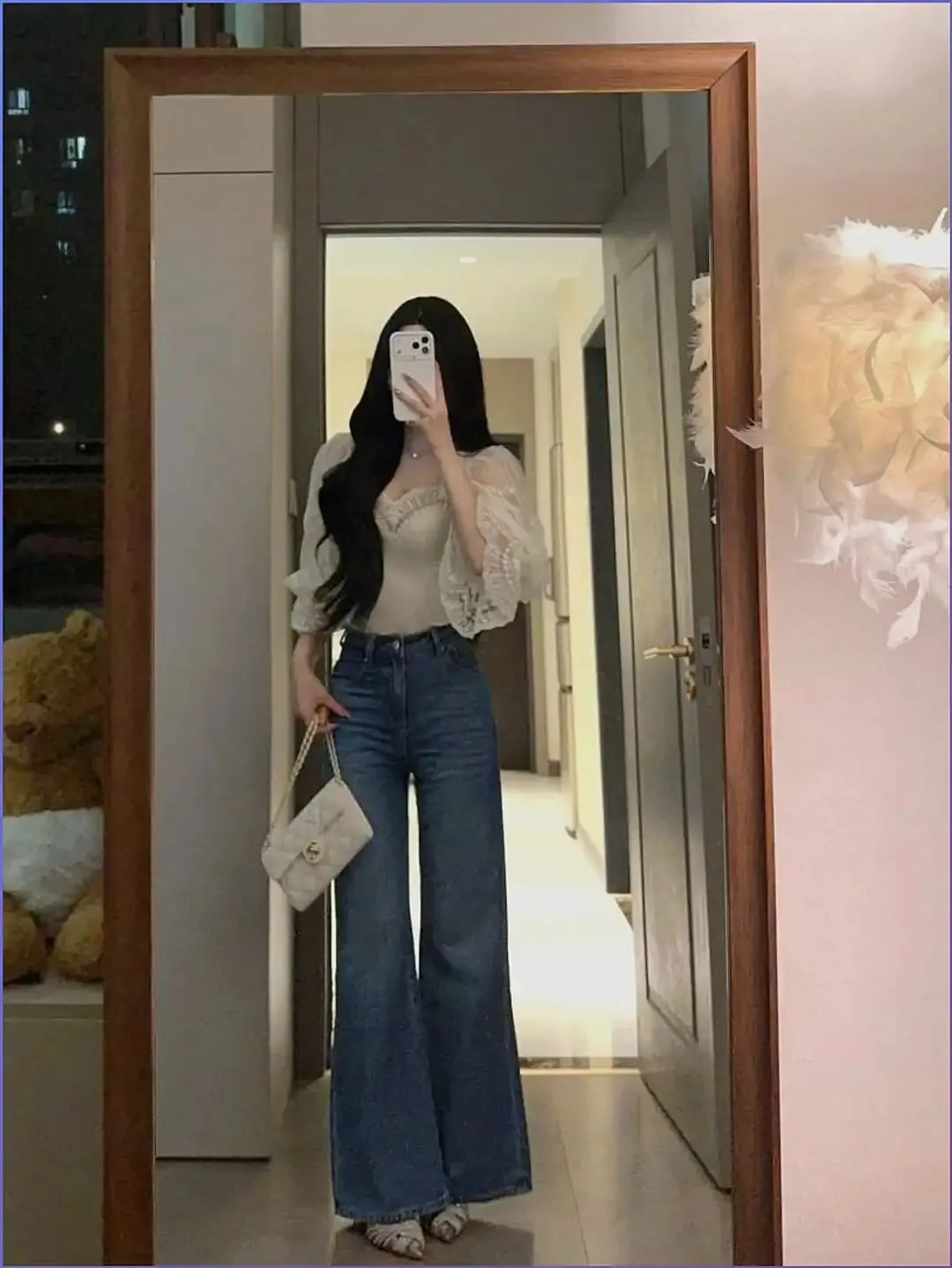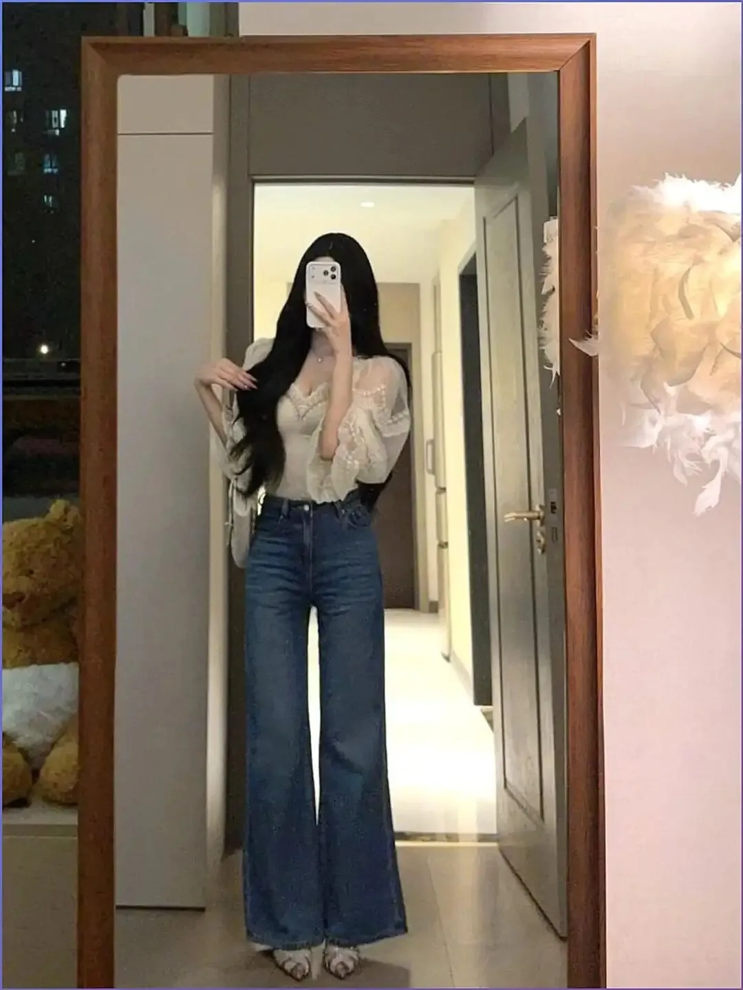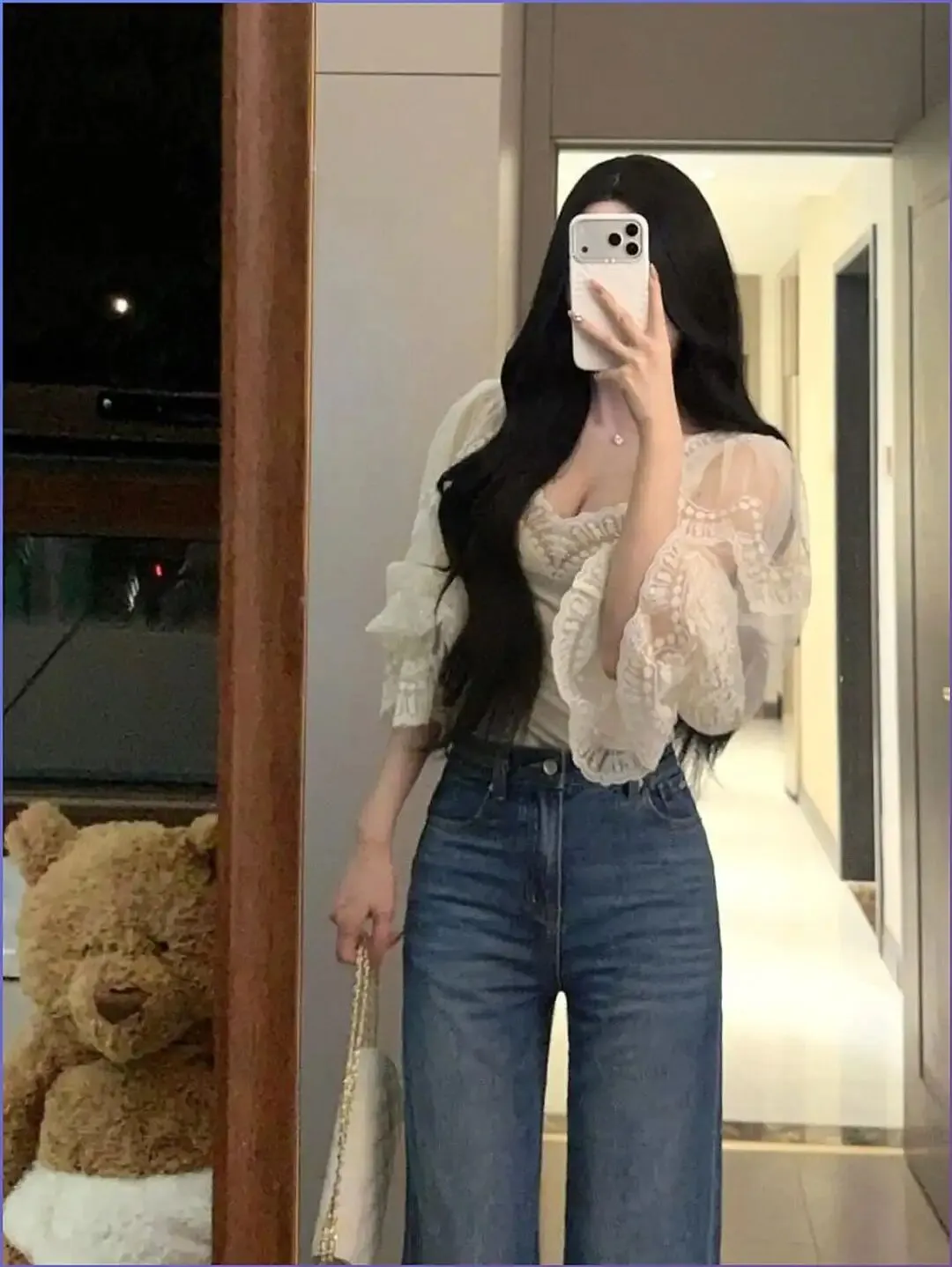当前位置:首页>美女资讯>白色蕾丝衫+高腰阔腿牛仔裤,这一套真的温柔又有分寸感,走路都自带气场!