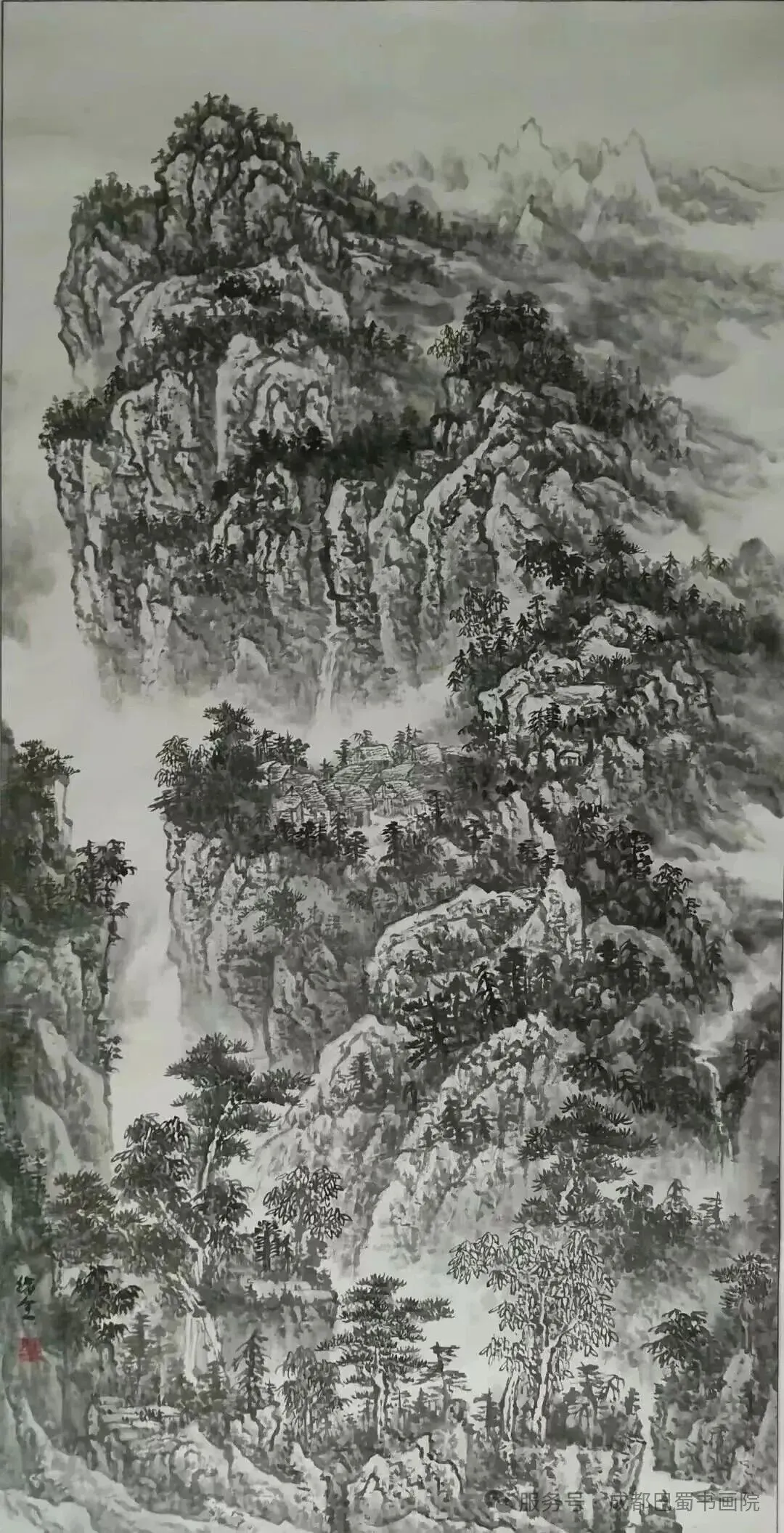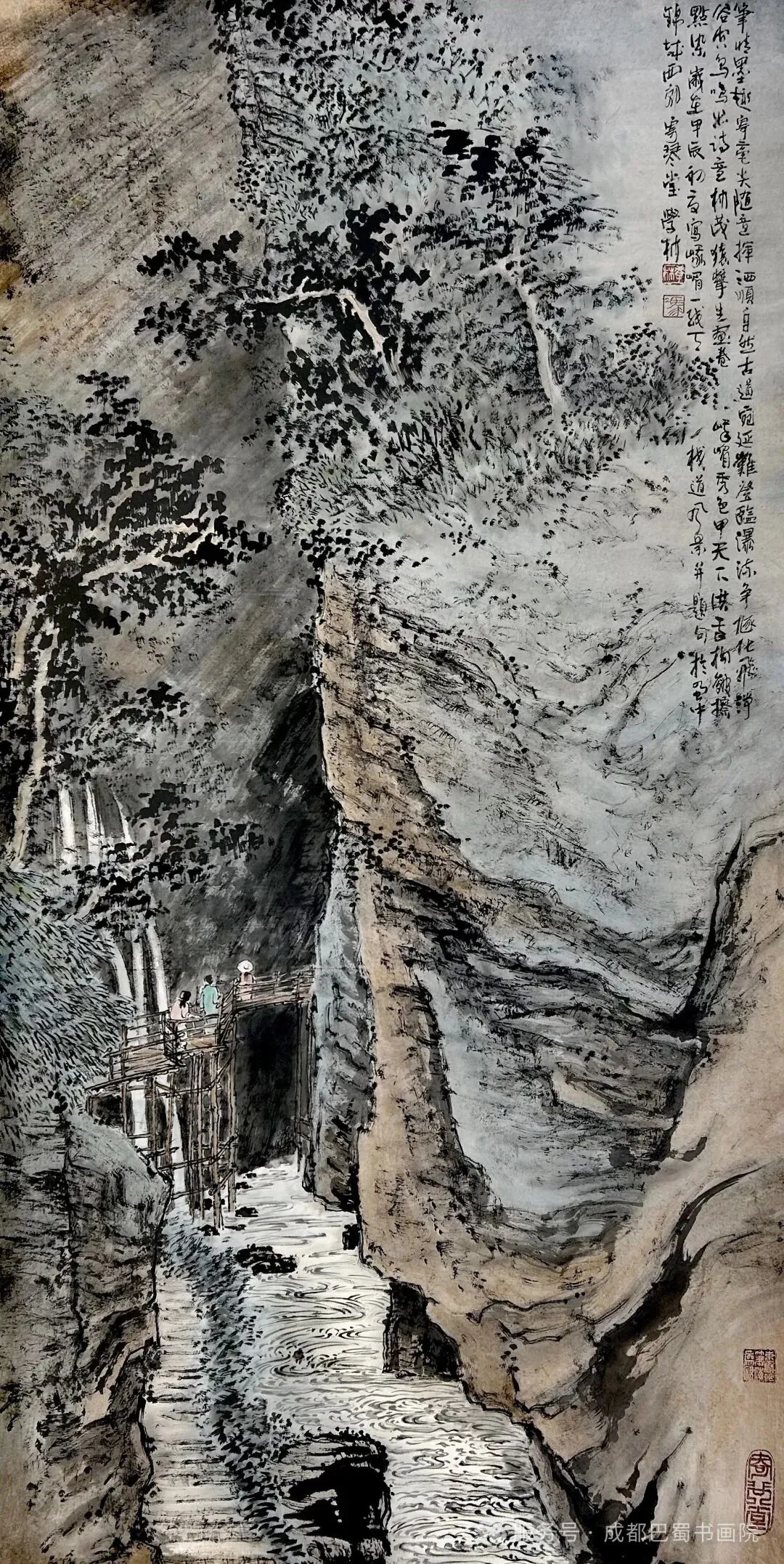 本次迎春画展汇集了成都巴蜀书画院众多艺术家的精品新作,包括山水画、人物画、花鸟画三大类,题材丰富,风格各异。山水画取青城幽邃、峨眉叠翠,写江峡奔流、田畴纵横,以皴擦点染再现巴山蜀水的苍润雄浑,用浓淡干湿勾勒山河壮阔的时代气象。笔锋所至,既有传统文人画的雅逸风骨,又具当代审美语境下的精神表达。人物画兼具形神之美,或刻画先贤雅士的超然风骨,或描绘少数民族的烟火温情,于细微处见真情,于寻常中显大美,将传统意象与新春祝福巧妙融合。花鸟作品尽显自然生机与人文意趣。寒梅傲雪,禽鸟栖枝,竹石坚韧,兰草清雅,每一幅作品都传递着对生命的热爱,对生活的赞美和对新春的祝福。