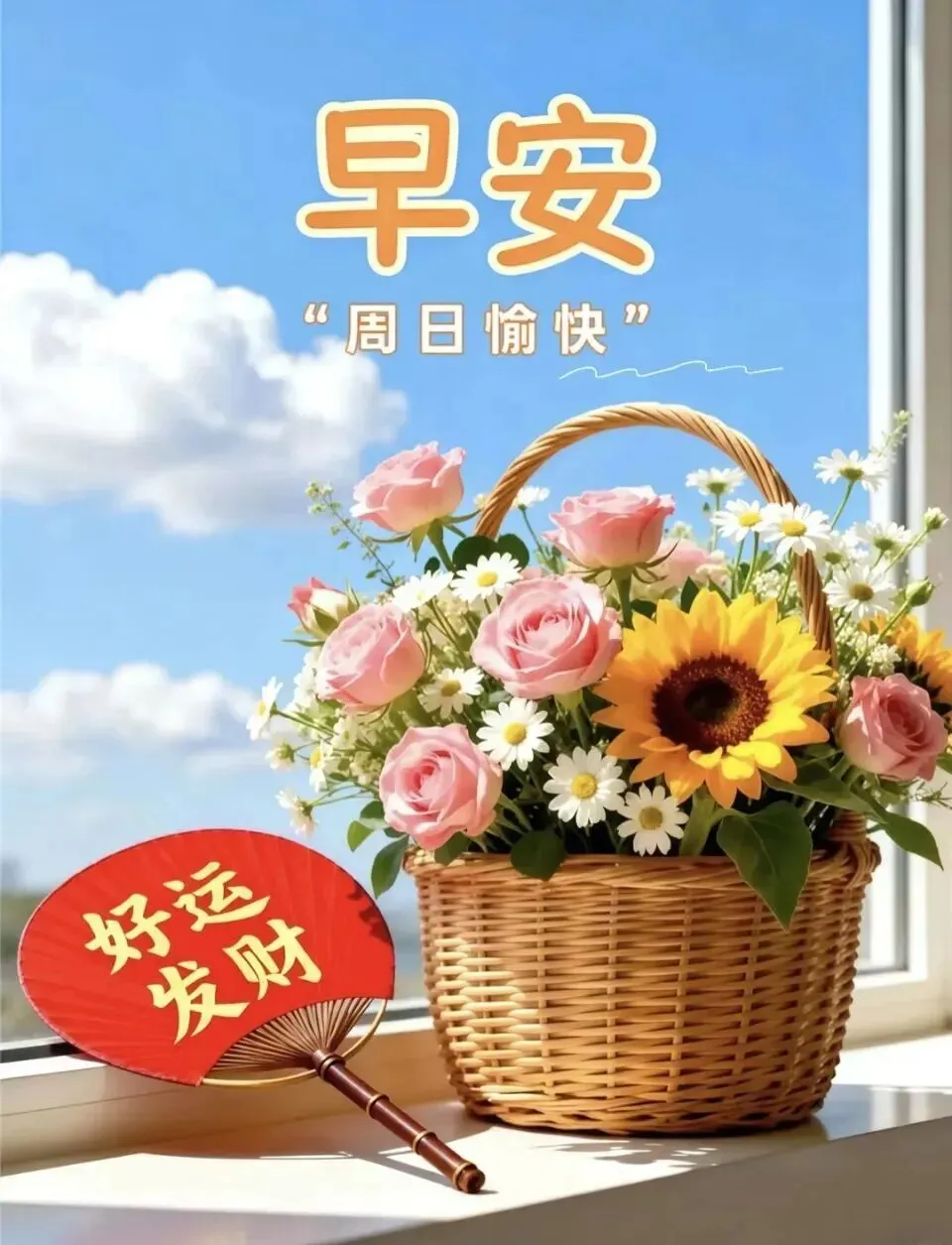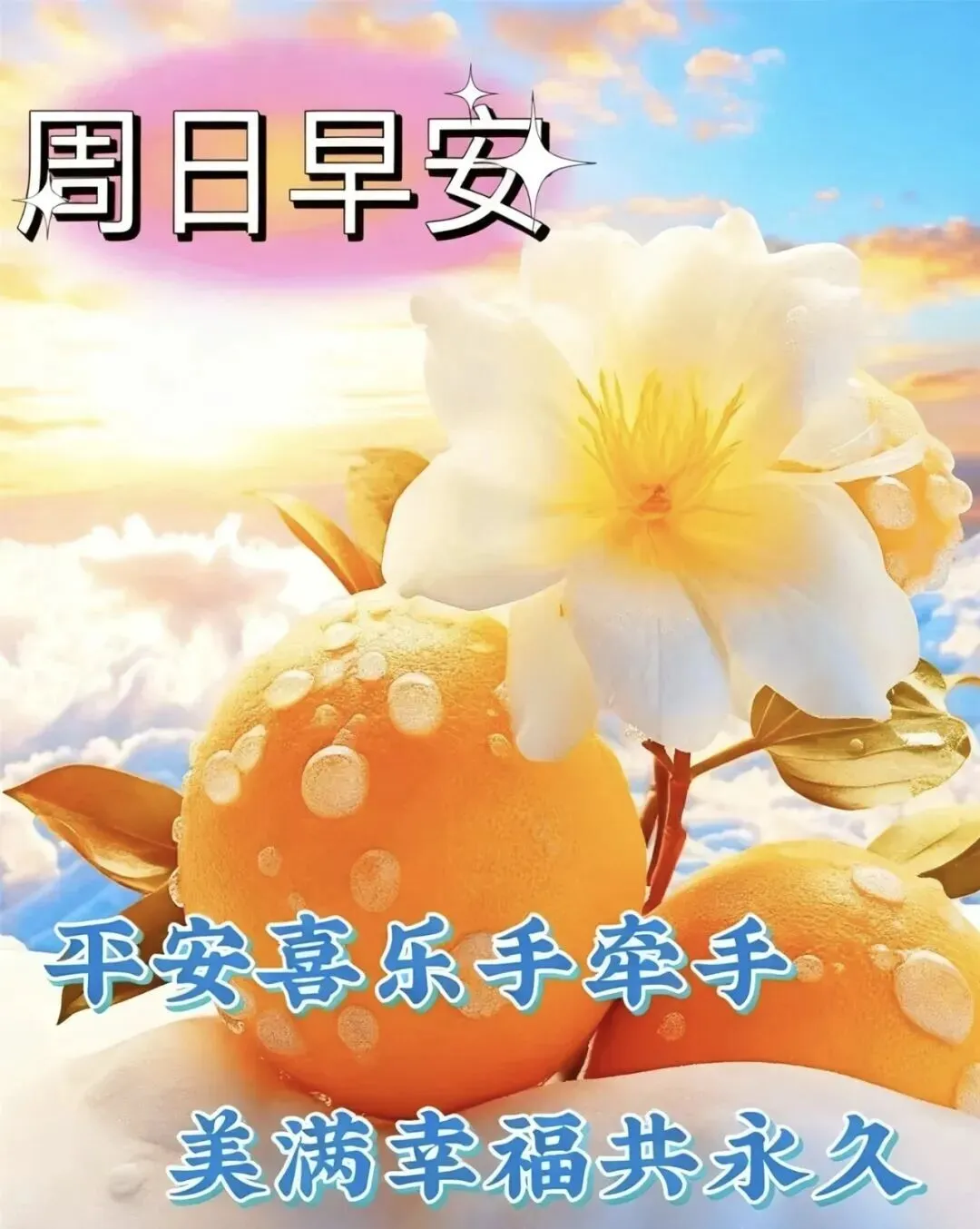 3. 周日早安🌞!愿清晨的第一缕阳光,照亮你前行的路,温暖你平凡的日常🌤。愿生活不拥挤,笑容不刻意,日子清欢,喜乐常伴,岁岁皆安康,年年皆胜意💖!