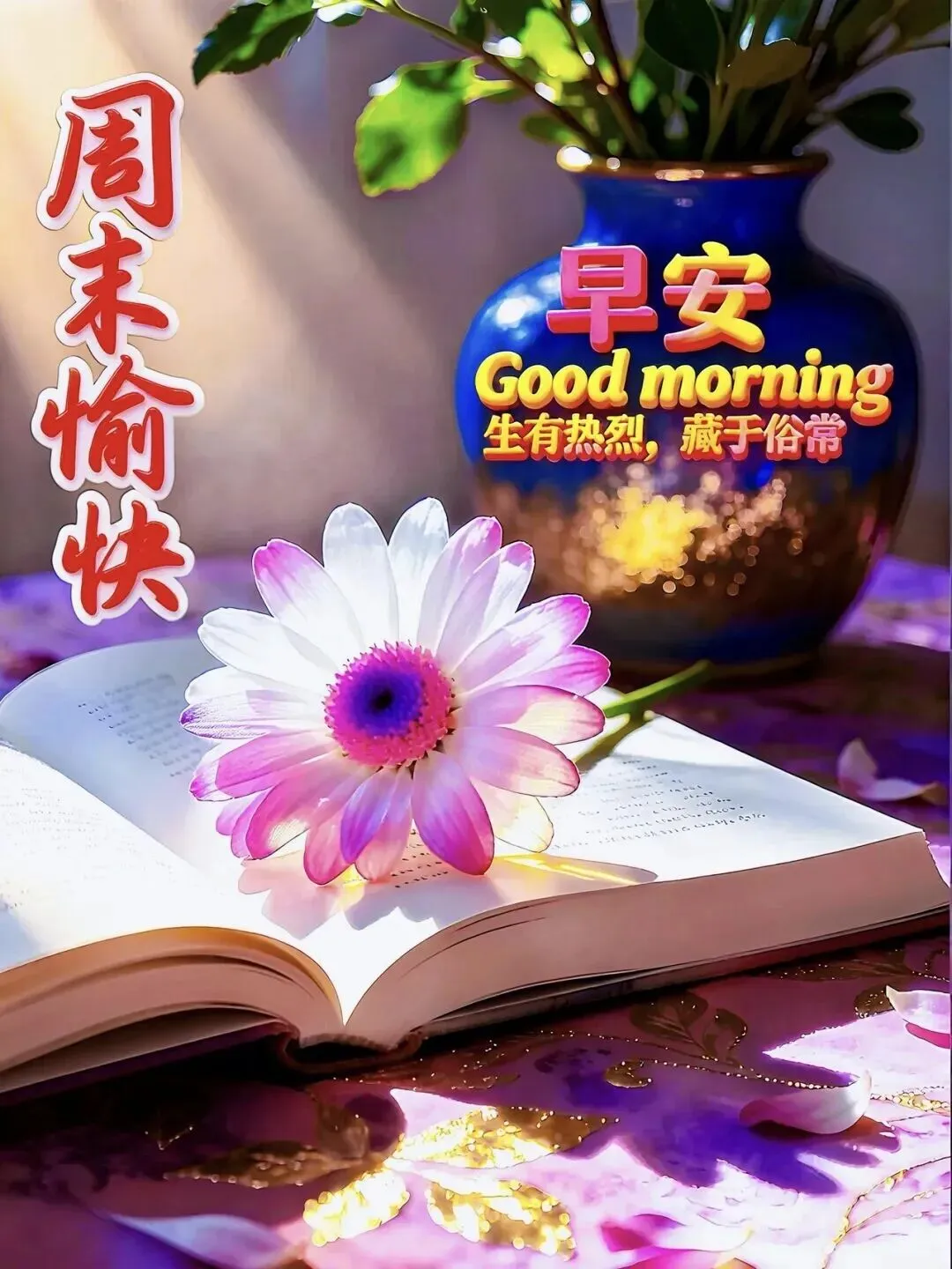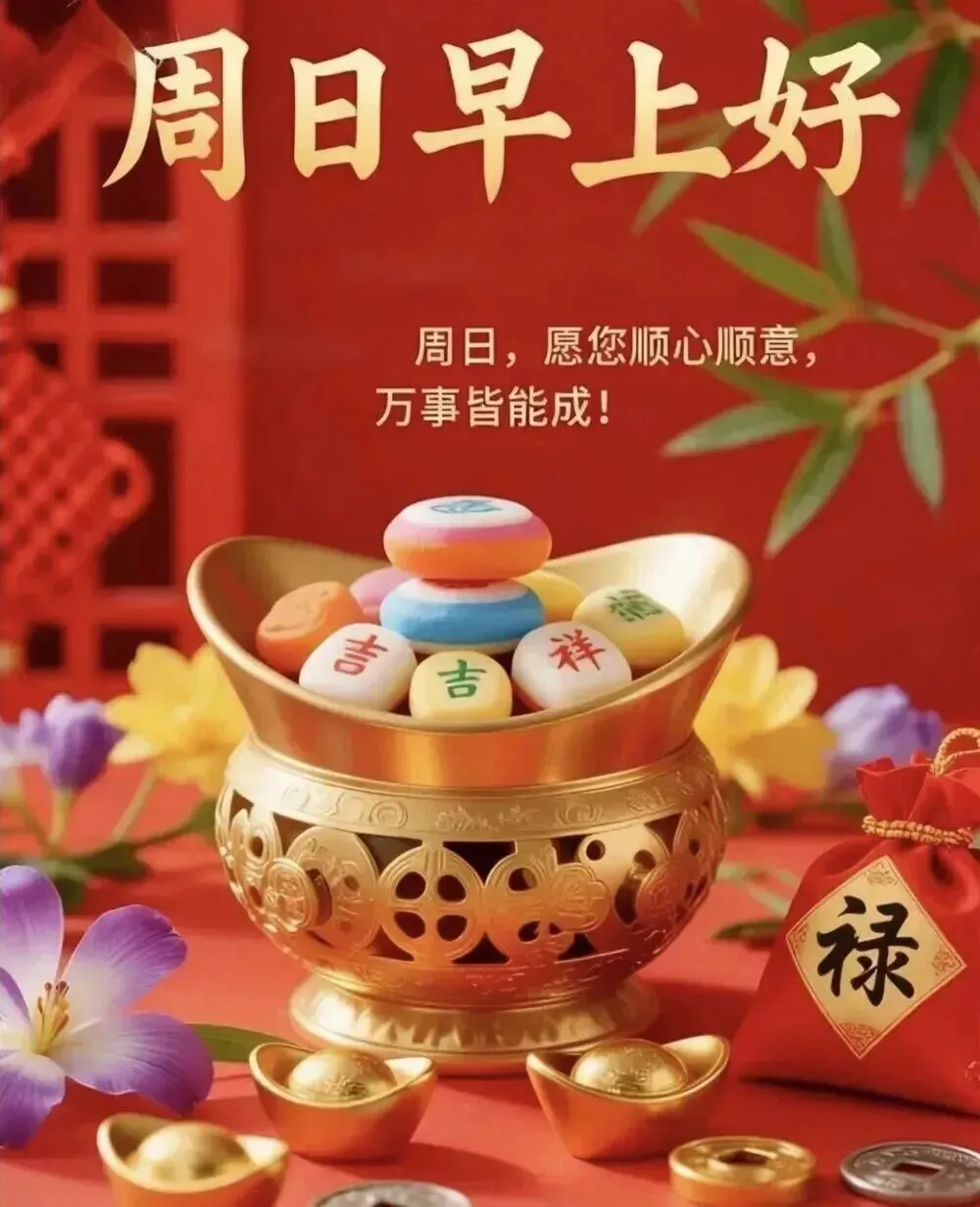 1. 周日早安☀️!清晨的风轻轻拂过,把烦恼都吹散,把好运都带来🍃。愿你在这温柔的周末里,心有暖阳,笑有光芒,三餐有味,四季安然,平安喜乐,万事顺遂✨!
