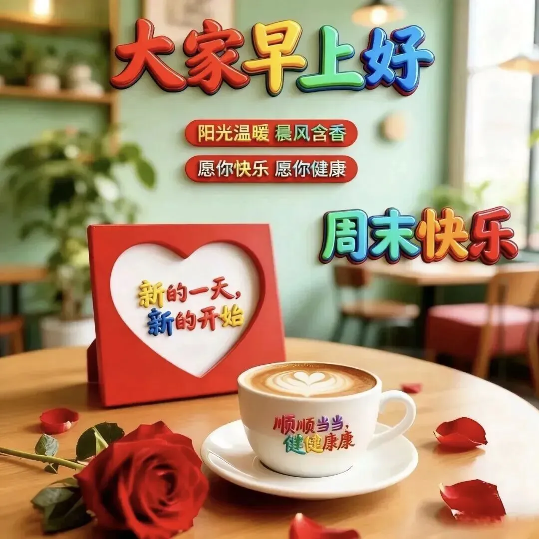 8. 早上好~周末时光,慢一点,幸福就多一点☕️。泡一壶好茶,享一份清闲,让心情随阳光绽放🌼。愿你平安喜乐,无忧无虑,所求皆所得,所盼皆成真🥰!