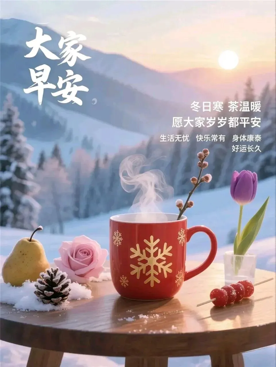 2. 早上好呀~新的周日,新的好心情☕️!放下忙碌,拥抱清闲,泡一杯热茶,听一首轻曲,让时光慢慢流淌🍵。愿你被温柔以待,被幸福包围,所求皆如愿,所行皆坦途🥰!
