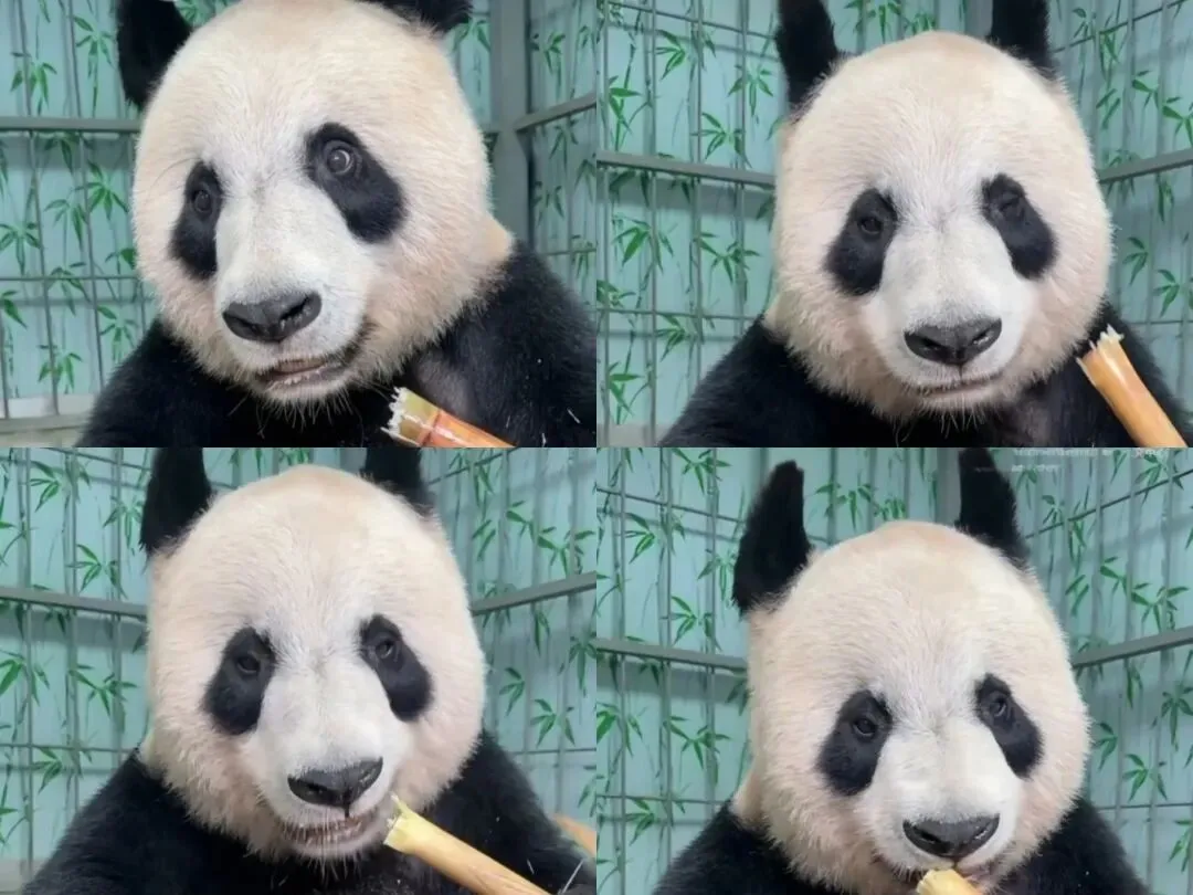中心公布的视频里,不老女神大熊猫甜甜风采依旧。那双眼皮大眼睛,左顾右盼炯炯有神,一点也没有人老珠黄的模样儿。