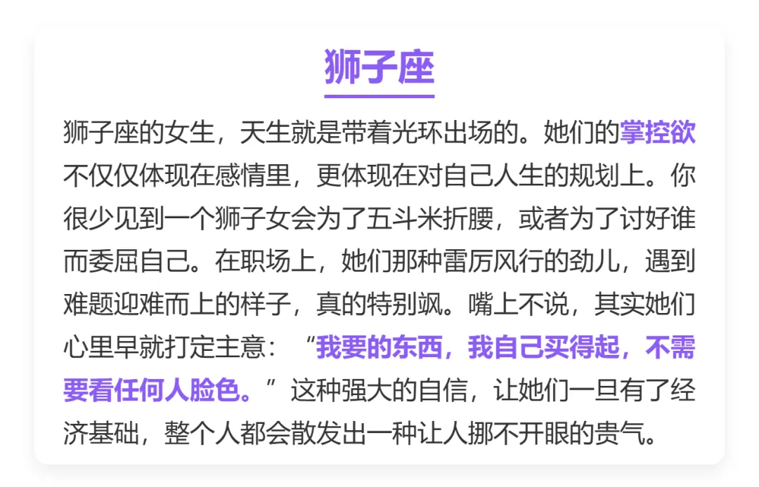 当前位置:首页>美女资讯>越独立越迷人,越有钱越自在的四大星座女,女王范儿!