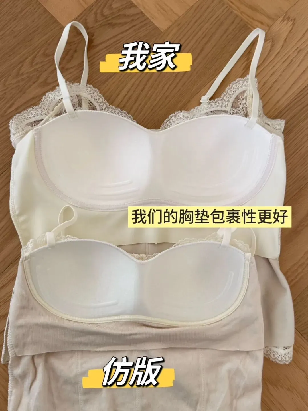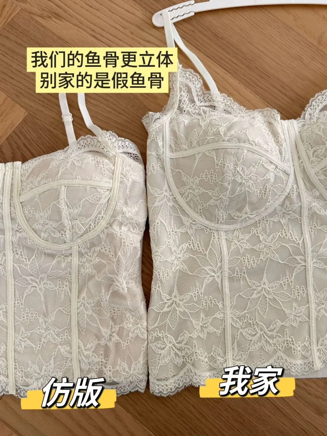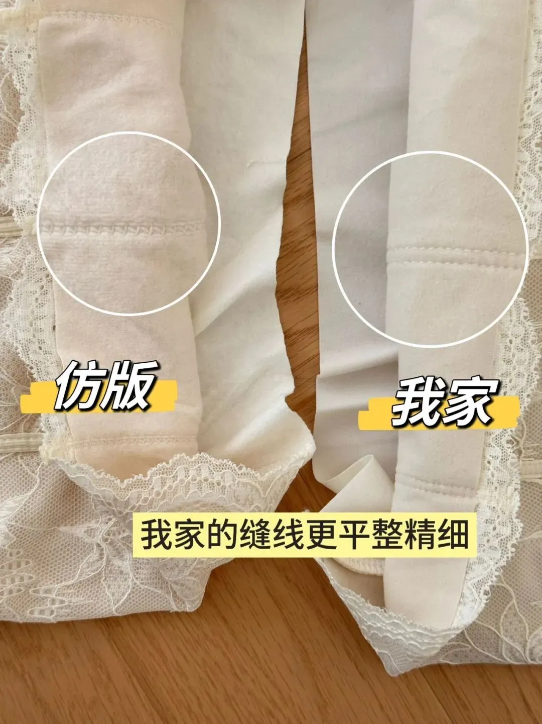 大家自行对比一下细节,我们是正版2.0鱼骨蕾丝保暖内衣。