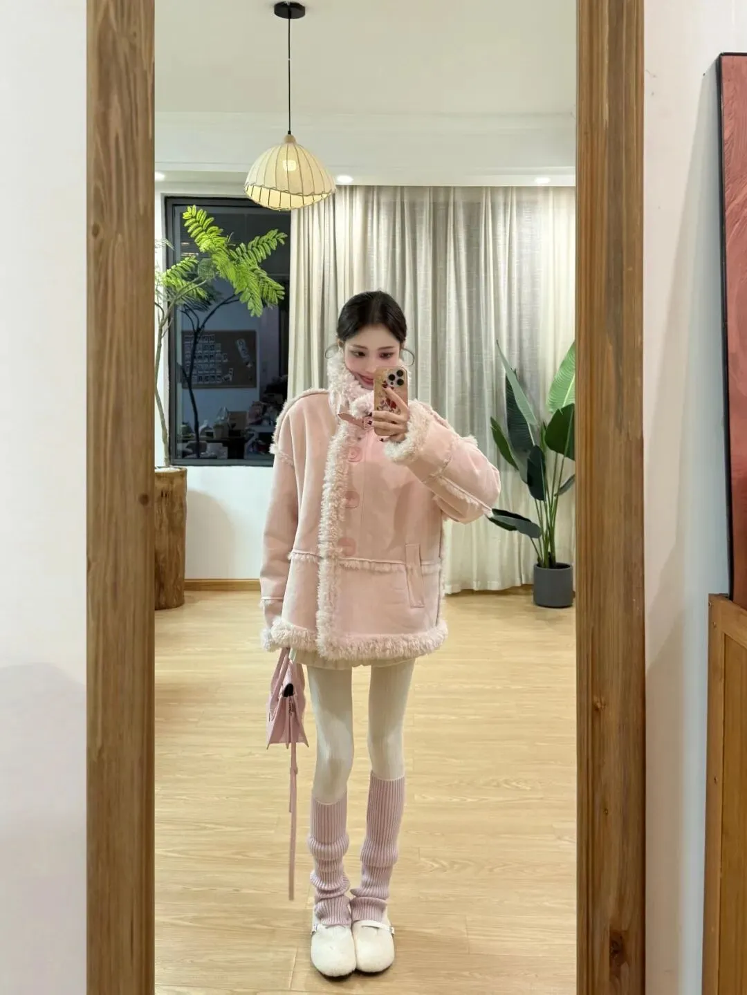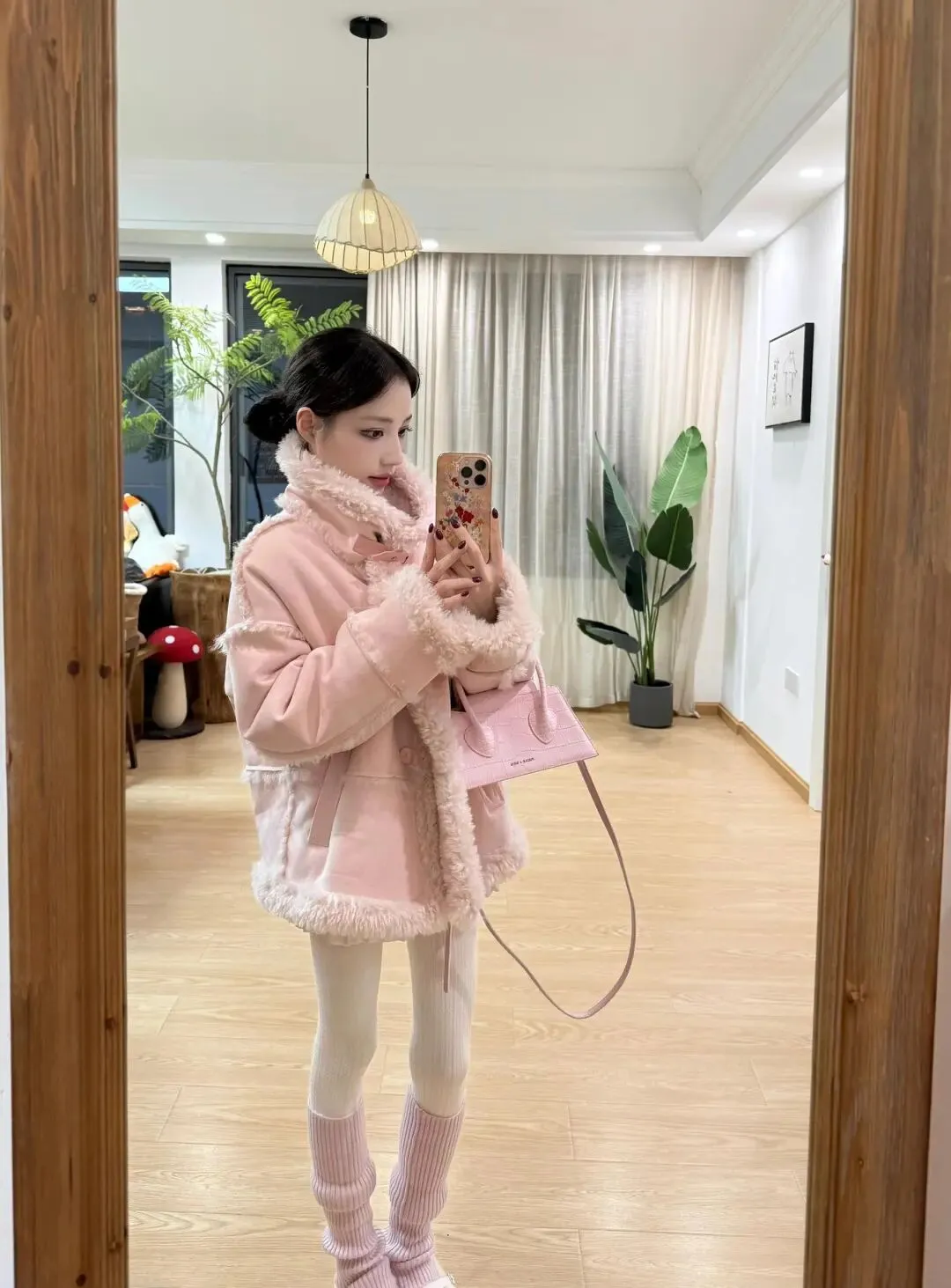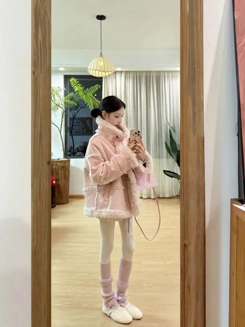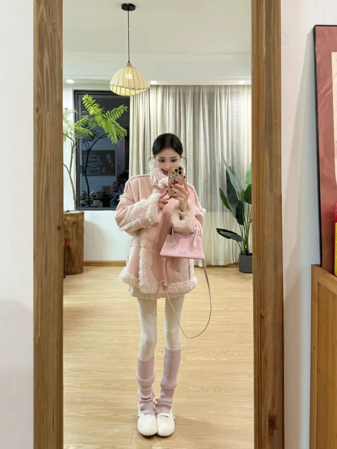当前位置:首页>美女资讯>嫩粉皮毛一体 + 蕾丝内搭 把冬日温柔焊在身上