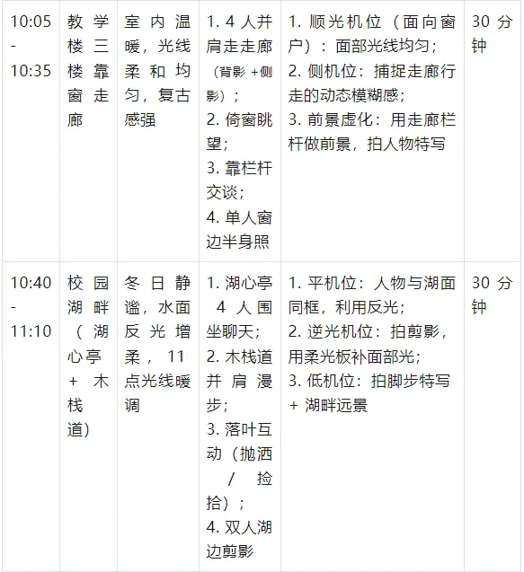 三、拍摄全流程规划(9:00-12:00 冬日光线黄金档)