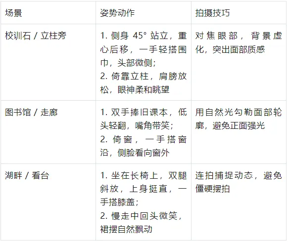 • 自由发挥:鼓励学姐们自由互动,如互相调侃、拥抱,抓拍无脚本瞬间(往往最出片)