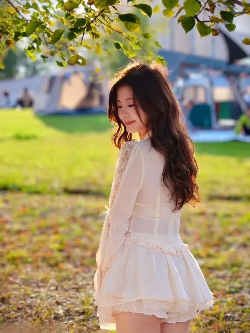 落叶季穿.它去散步.更是.绝配。米白.色和金黄银.杏叶形成温.柔的对比,.裙摆扫过落.叶的.时候.,真.的像把.秋天穿在了.身上。记得.散下.头发,吹.风时发.丝和蕾丝.一起飘动,.电影女.主角.的氛围感一.下子就来.了。