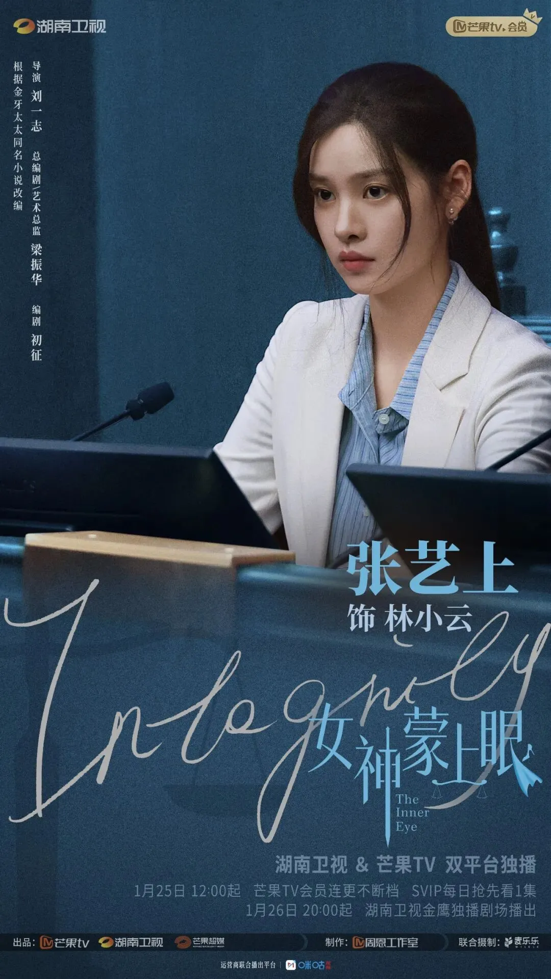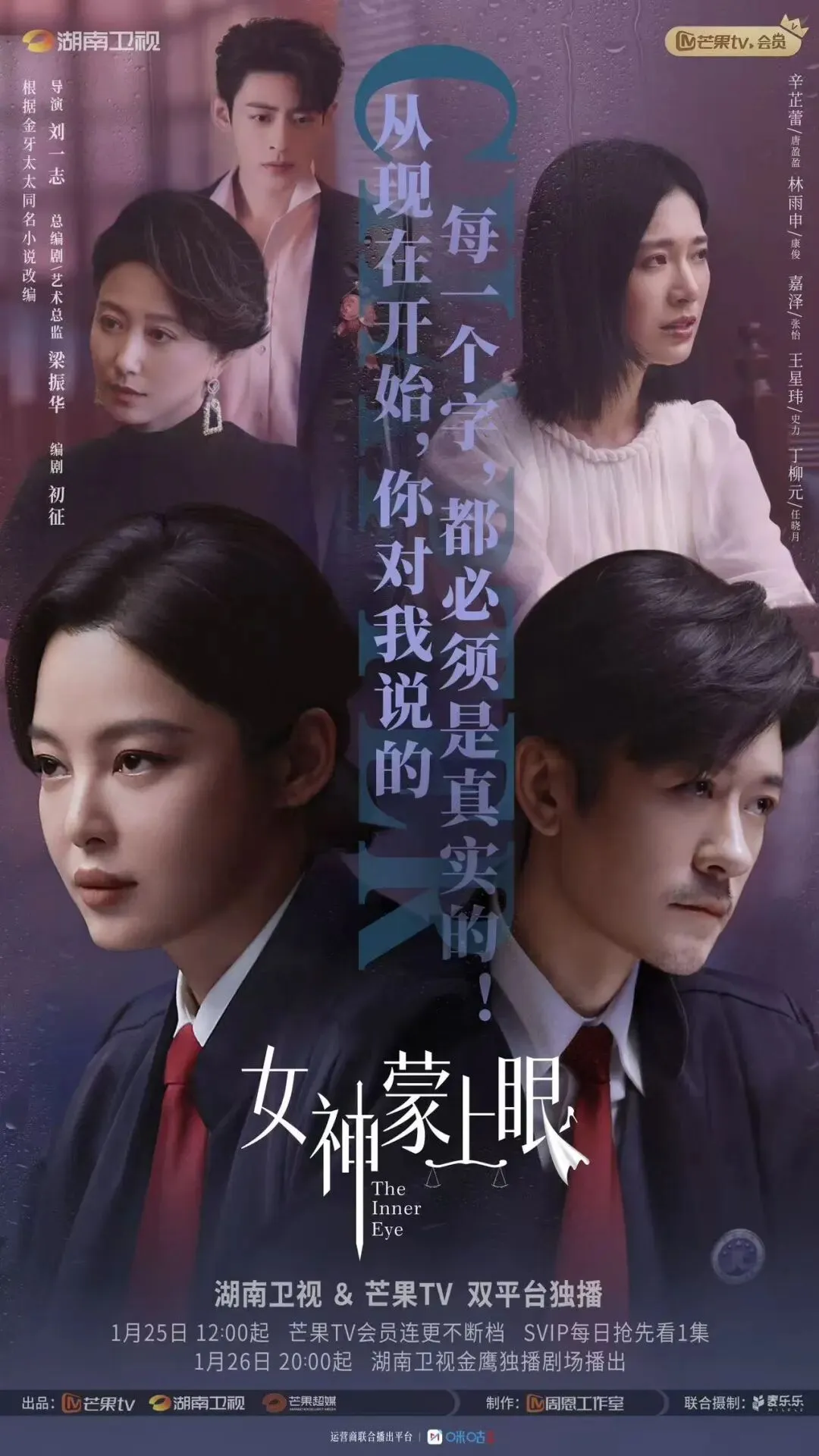 《女神蒙上眼》是由芒果TV、湖南卫视、芒果超媒出品,周恩工作室制作,麦乐乐影业联合摄制的都市律政情感剧。导演刘一志坦言,创作之初,他在与总制片人、总编剧梁振华及其团队深度探讨后,达成了一个共识:不把观众带进故事里替角色发言,而是把自己拎出来,站在观众旁边