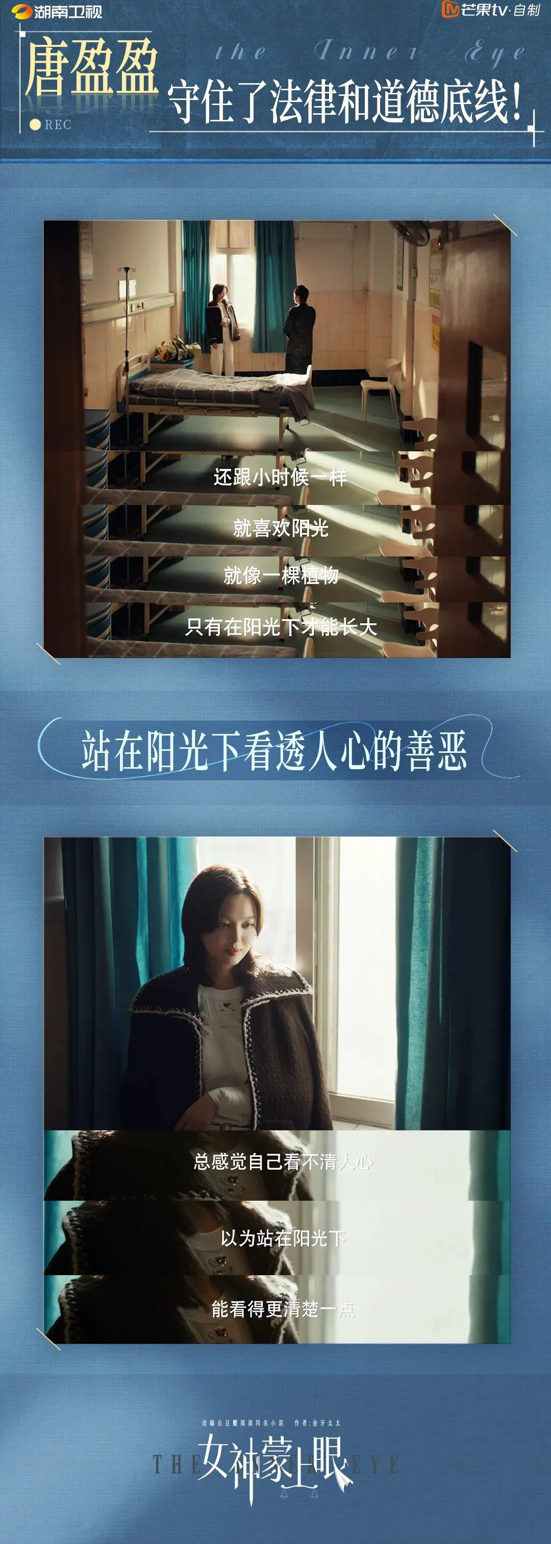 “《女神蒙上眼》可能看着很爽,但确实不是爽剧,而是一面女性职业信仰的镜子。唐盈盈不是完美的,她的选择也不总是正确,但在唐盈盈的这些不完美中,观众也更容易看到自己。”