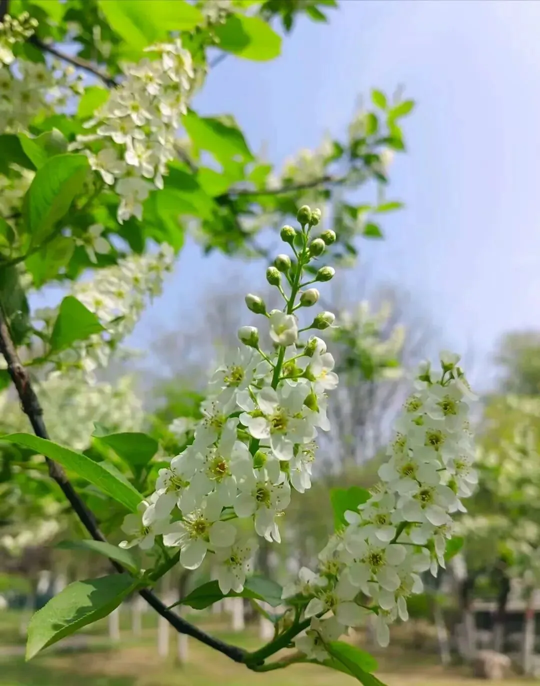 欣赏稠李花,需要调动所有的感官:远观那满树流泻的华盖,近感那甜蜜到令人窒息的芬芳,并在那极致的热烈中,体会一丝对短暂春光的无限怜惜与咏叹。