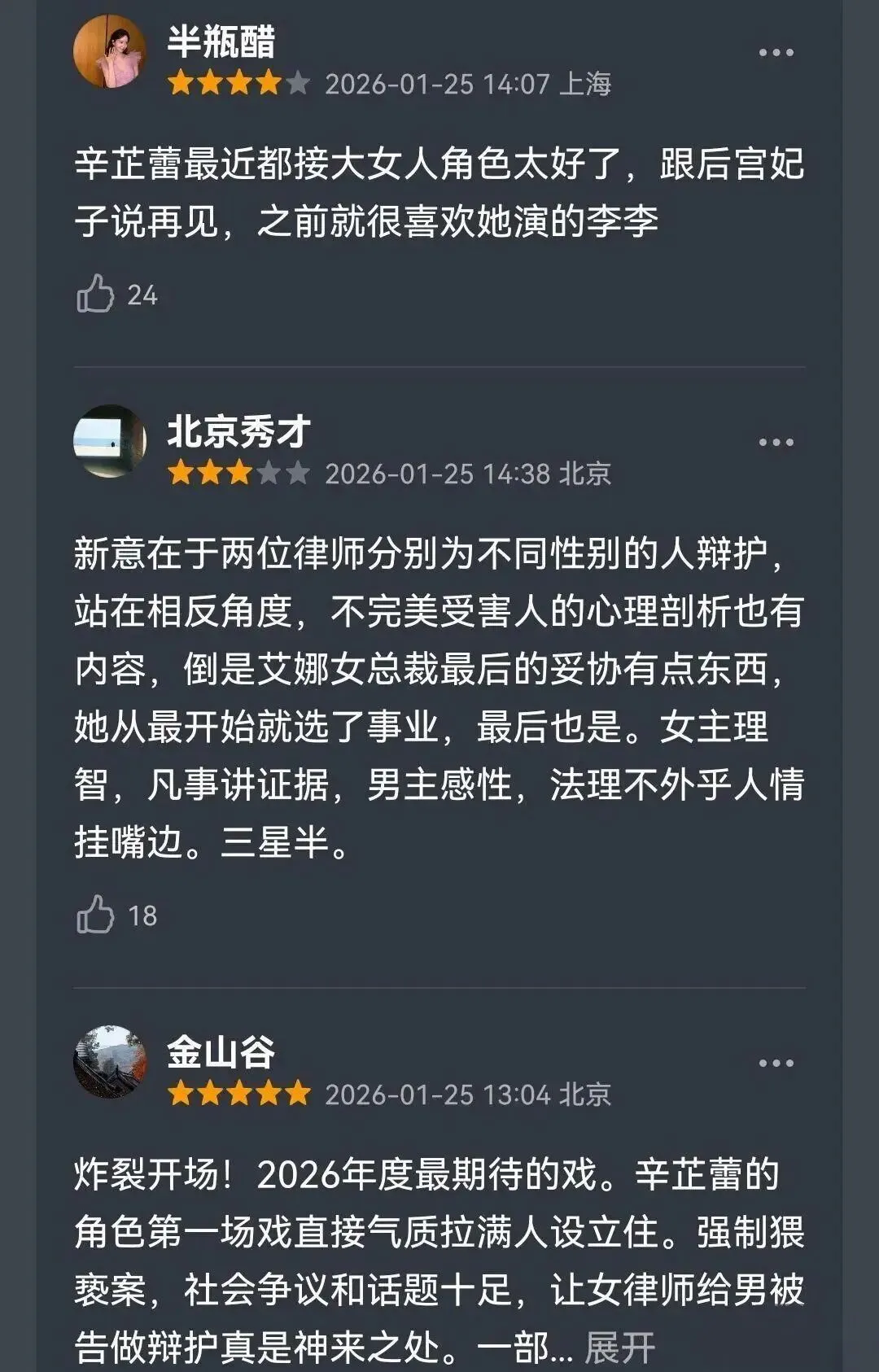 目前看来,这不仅仅是一部精彩的行业剧,更是一部能够引发广泛思考的现实主义作品。第二个案件的谜底将如何揭开?唐盈盈将在情与法的天平上如何走向成熟?一切有待后续剧集展开。