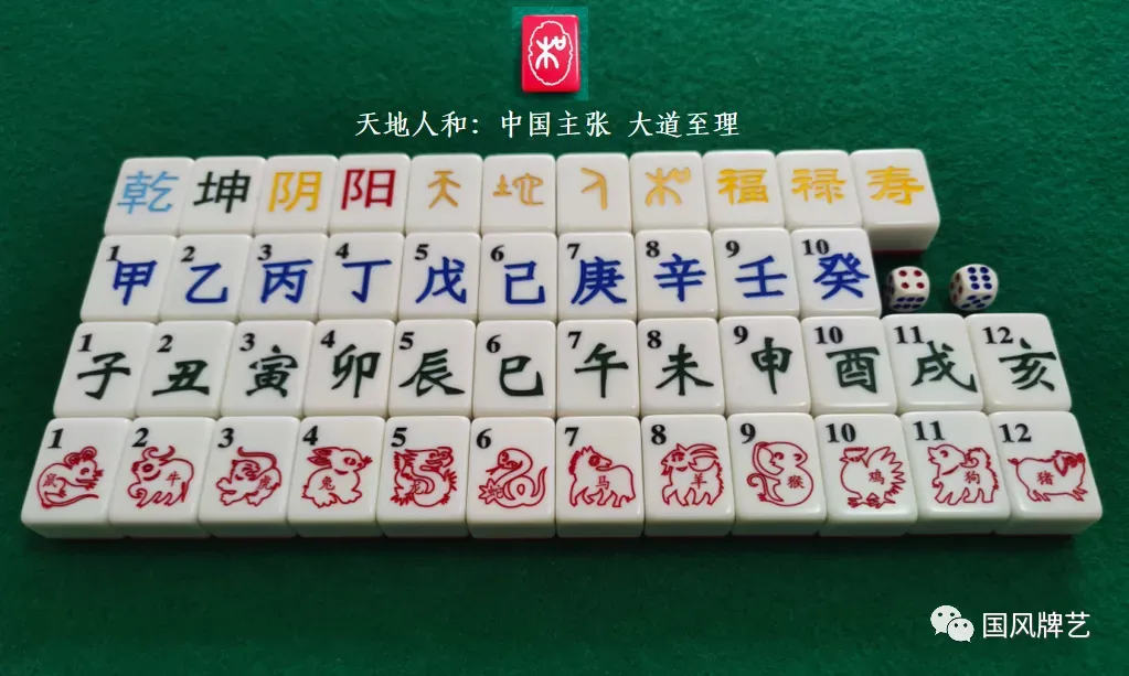 国风牌艺参照中国竞技麻将“国标”规则设计组牌技术番种。技术竞弈演心战,牌张文辞作教具。寓知于乐,以乐为学。于“混乱归序”的练脑和“闲乐聚欢”的怡情中,传播知识、弘扬文化,是全新的雀戏智趣体验。