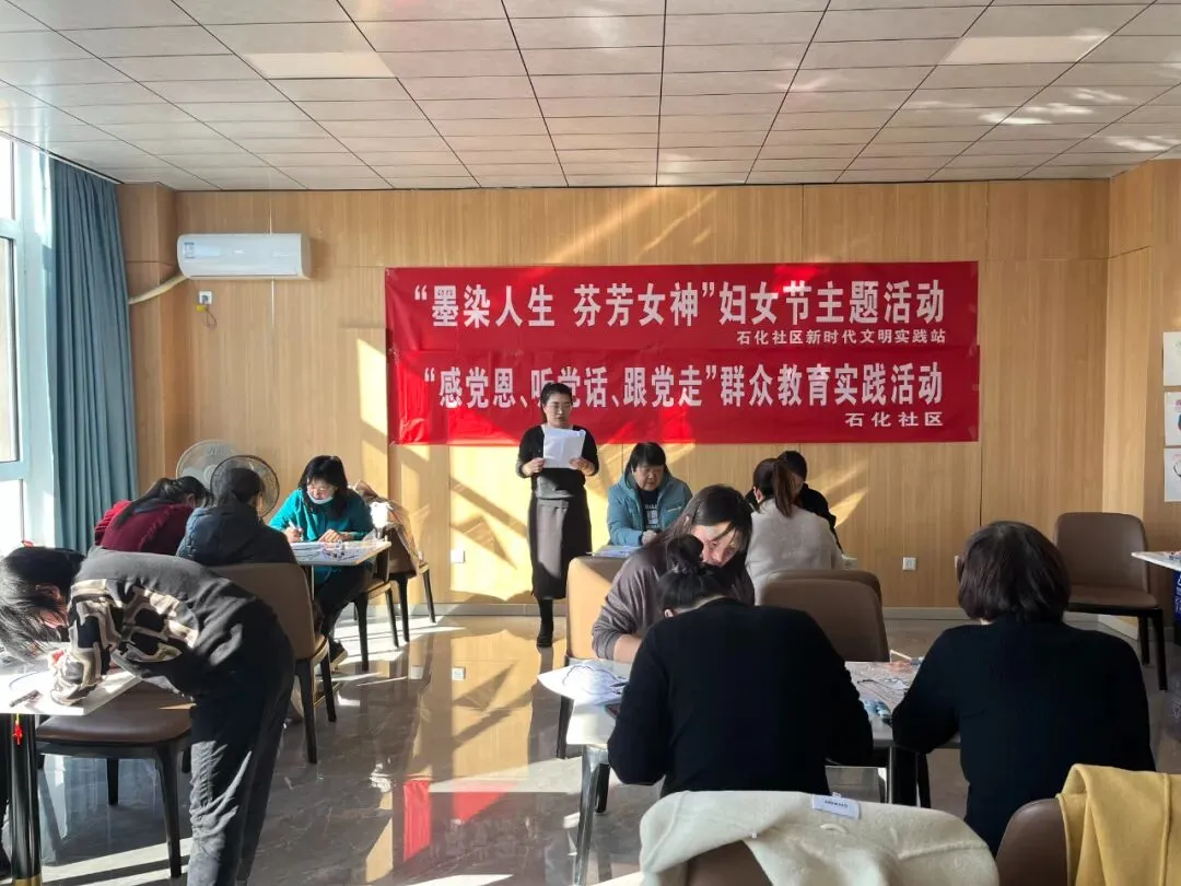 阳春三月,清风拂面,为进一步丰富社区妇女同胞的精神文化生活,展现女性魅力,结合“感党恩、听党话、跟党走”群众教育实践活动相关要求,石化社区在“三八”妇女节来临之际开展“墨染人生 芬芳女神”团扇制作活动,向广大女性朋友致以诚挚的节日问候。
