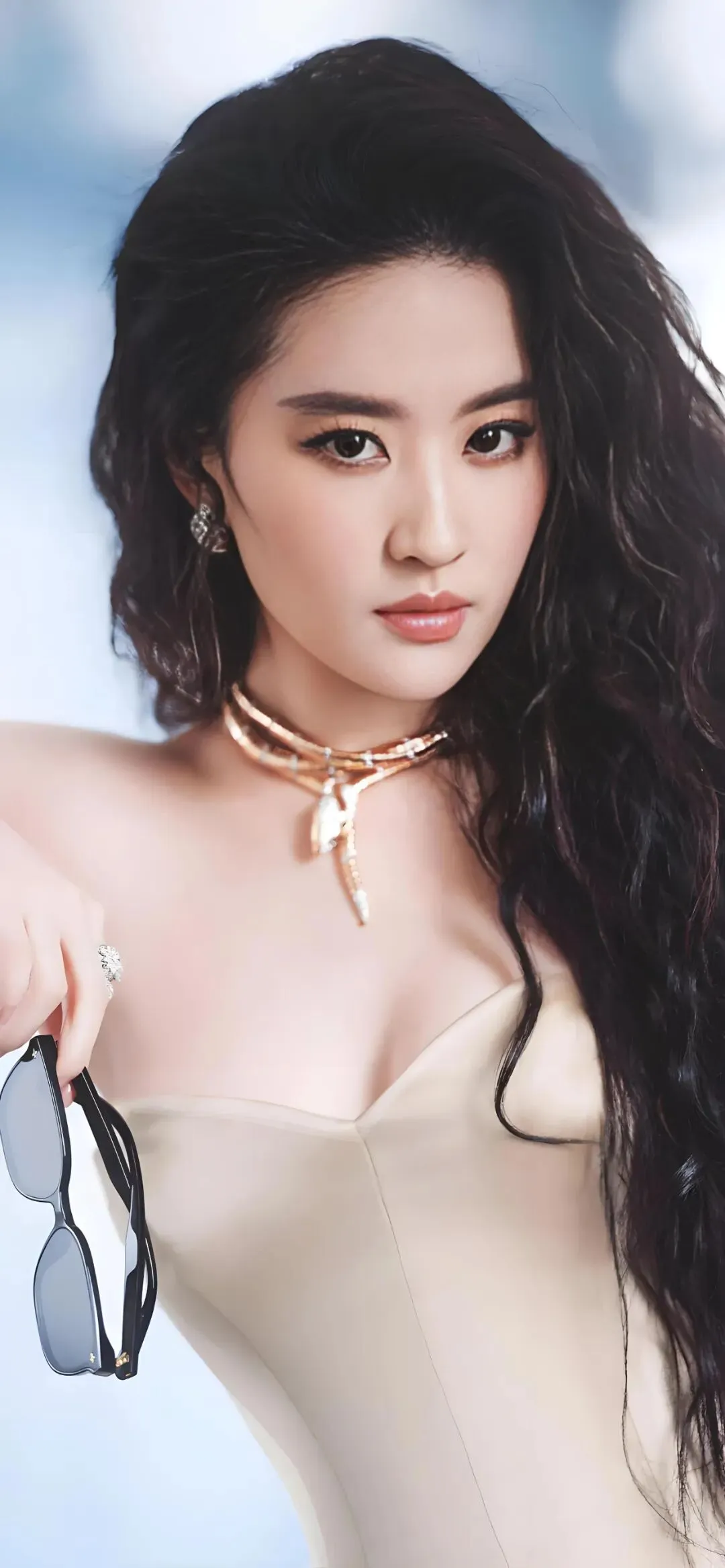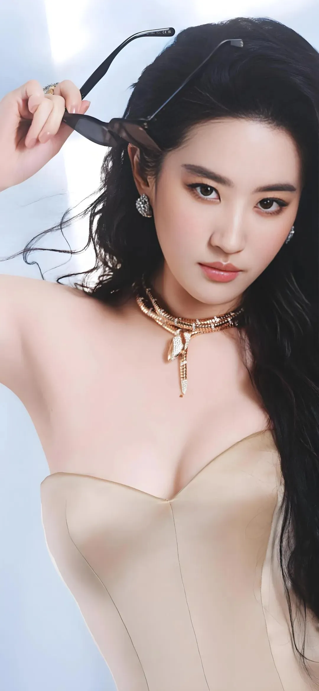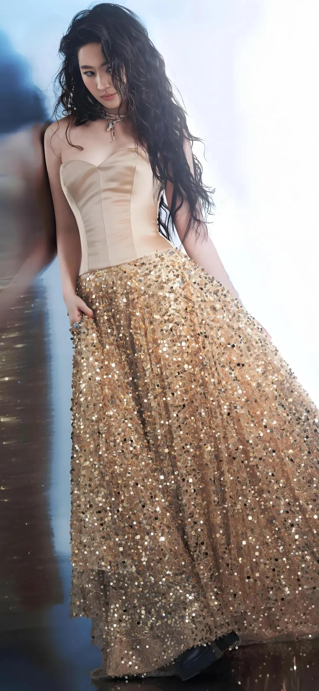 刘亦菲这身金色亮片裙也太绝了!壁纸级女神气质