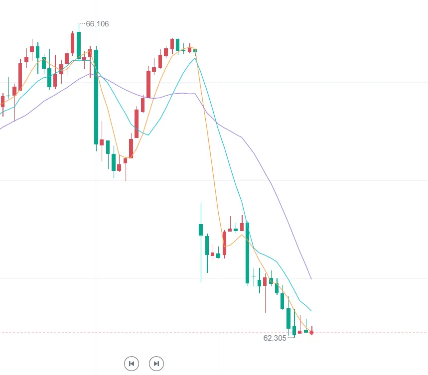 1、建议在63.3-63.5美金附近做空,止损0.3个点,目标看62.5-60.3美金附近即可,
