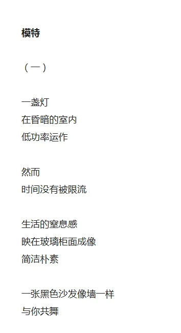 木子角,黄昏主义者,现居广东。2015年起开设个人原创公众号“缘诗漂航”,近年习作大多收辑于《谷雨有龙》《黄昏主义者》《野马与尘埃集》等,亦有填词配乐内容以“黄昏主义者”之名发布于专辑《登月启事》《谷雨有龙》《现代海棠》《黄昏与夜》《我不懂》《情事》(更新中),酷狗音乐、QQ音乐、酷我音乐平台均已上线。