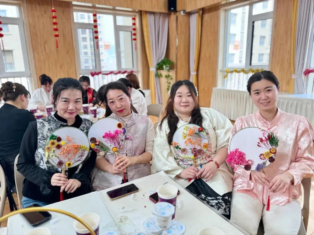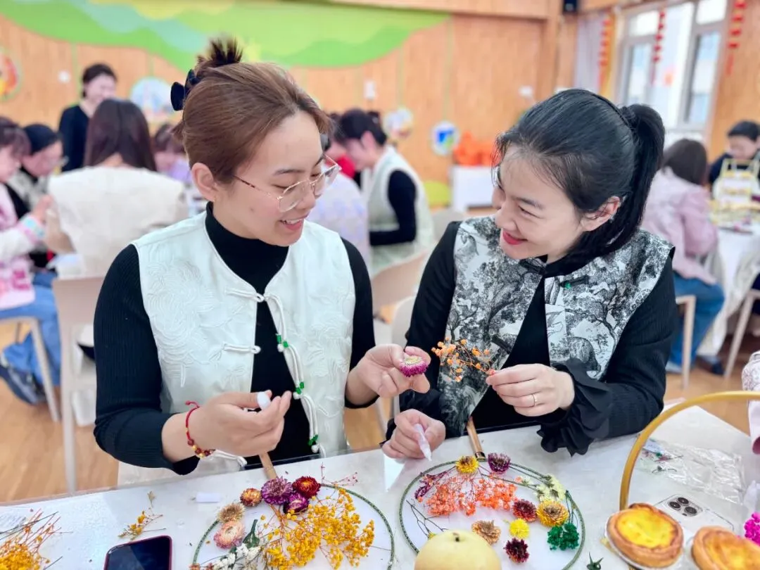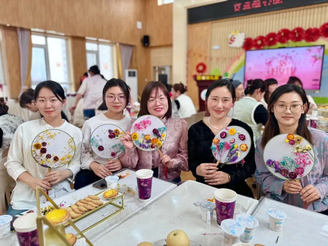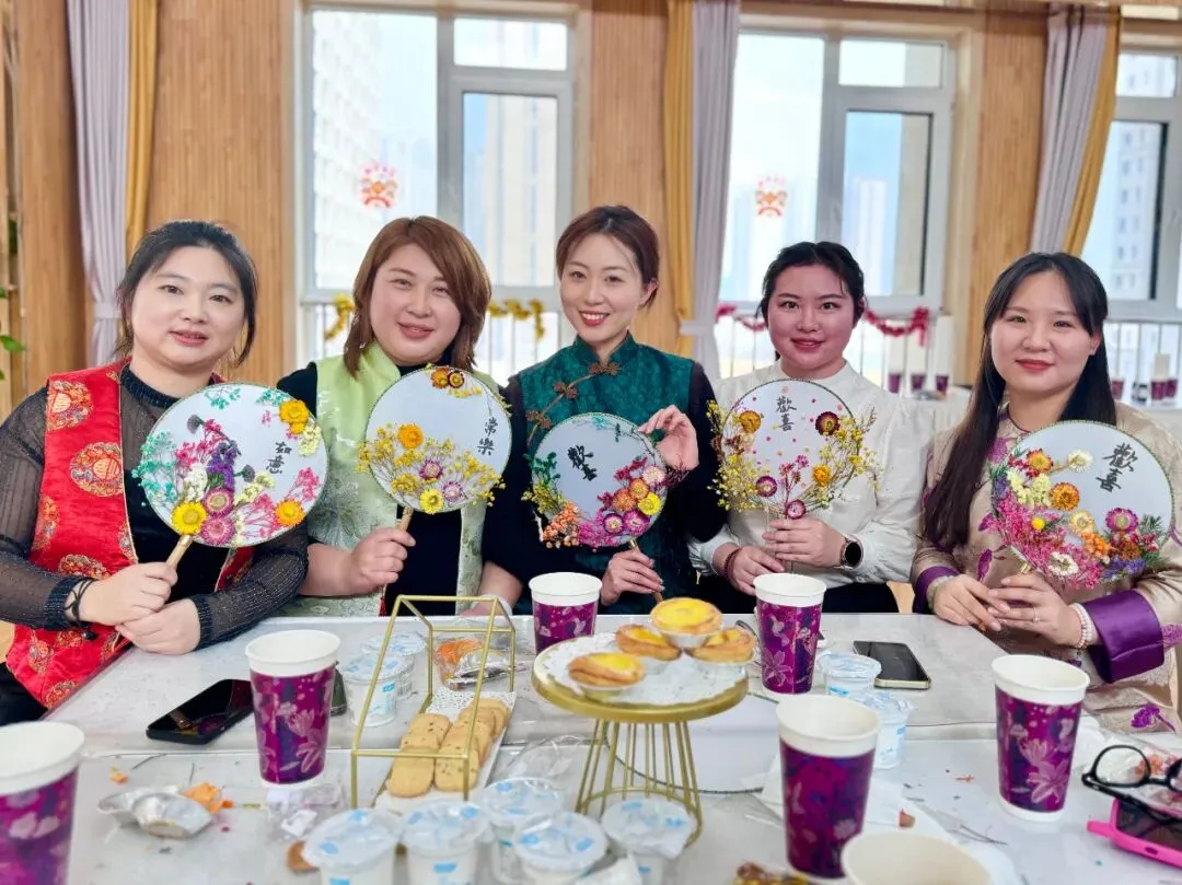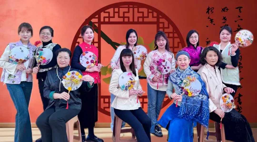 一样的花材,不一样的呈现。五彩斑斓的干花点缀白色团扇,为老师们平淡生活增添了一份美的色彩,领略中国传统文化深藏的魅力。