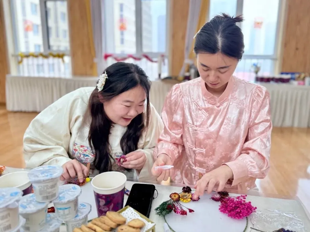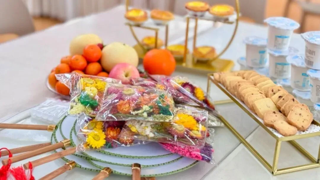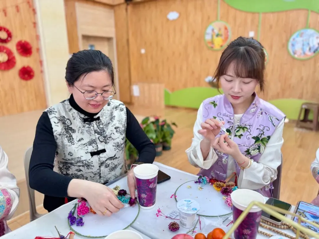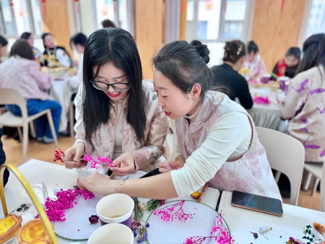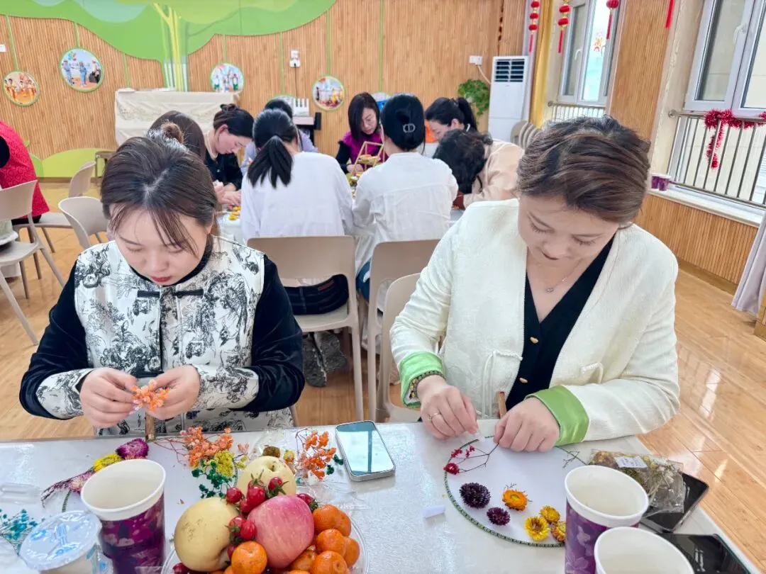 一样的花材,不一样的呈现。五彩斑斓的干花点缀白色团扇,为老师们平淡生活增添了一份美的色彩,领略中国传统文化深藏的魅力。