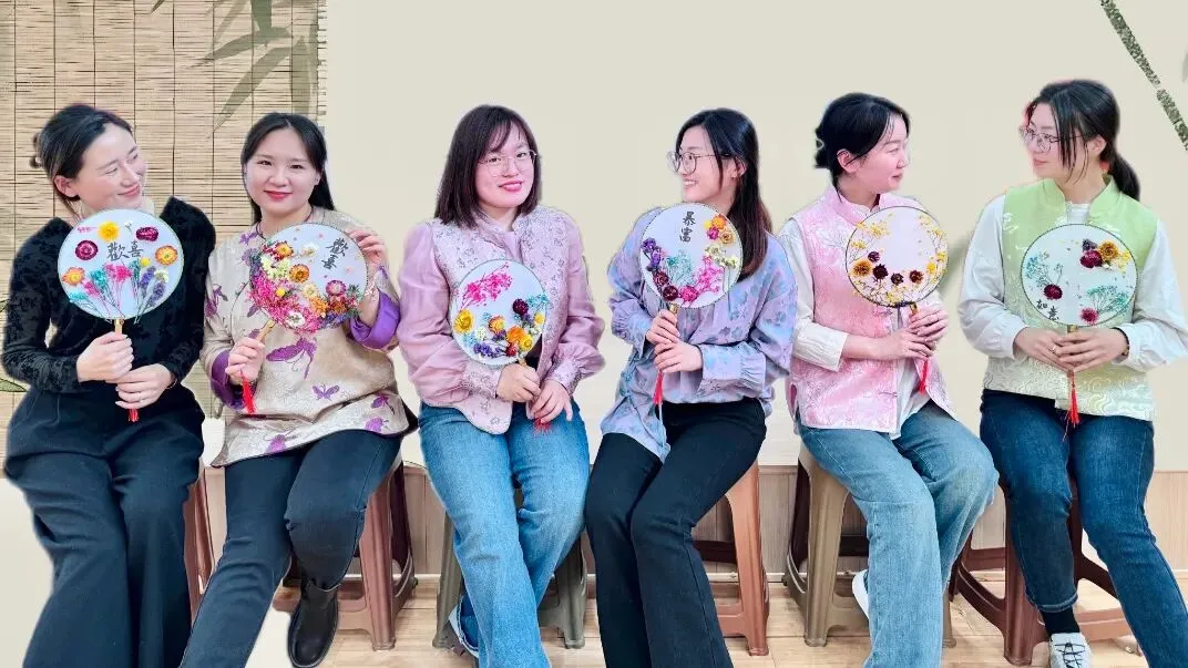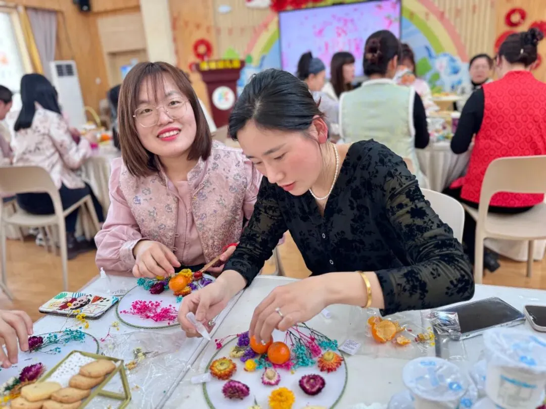 活动中,大家根据不同的永生花材料,发挥想象,在素白的扇面上大胆设计、精心制作。从造型布局到色彩搭配,一柄柄清新淡雅的团扇逐渐完成。