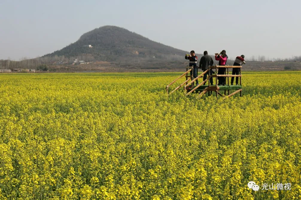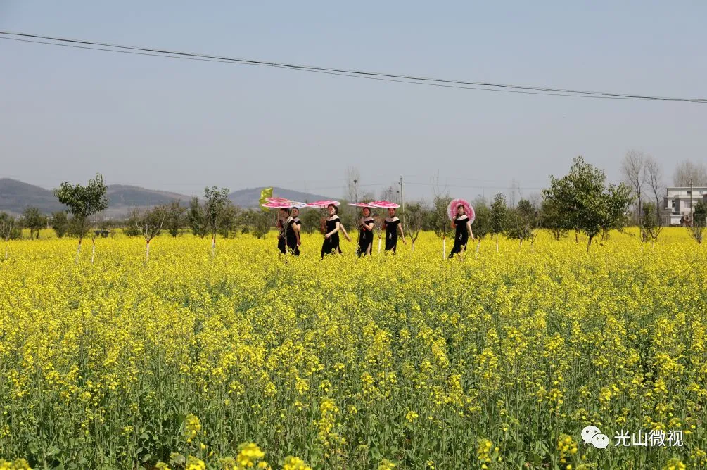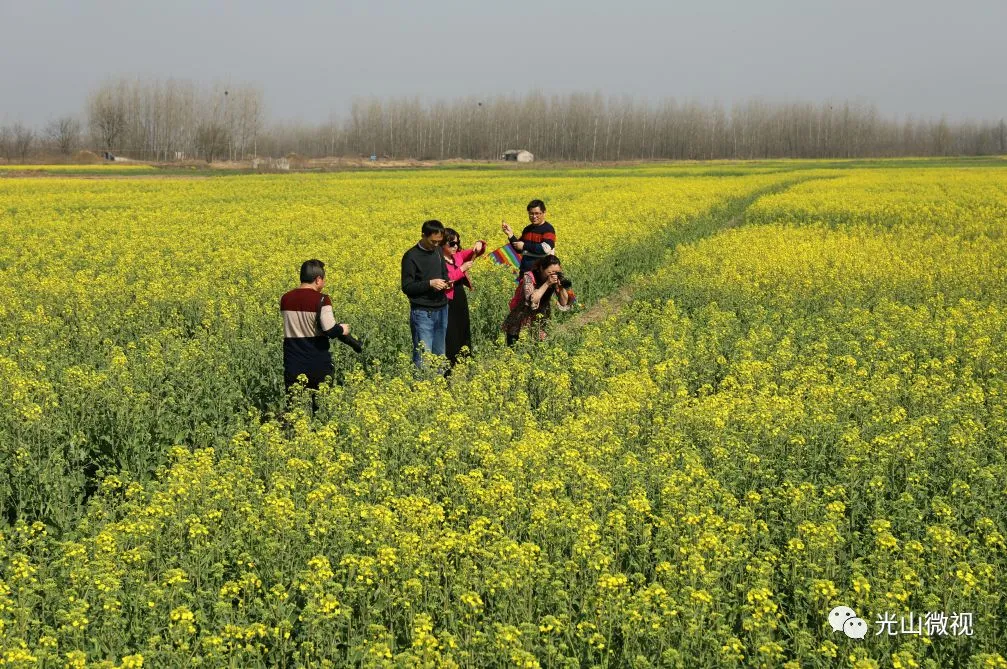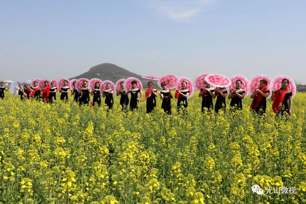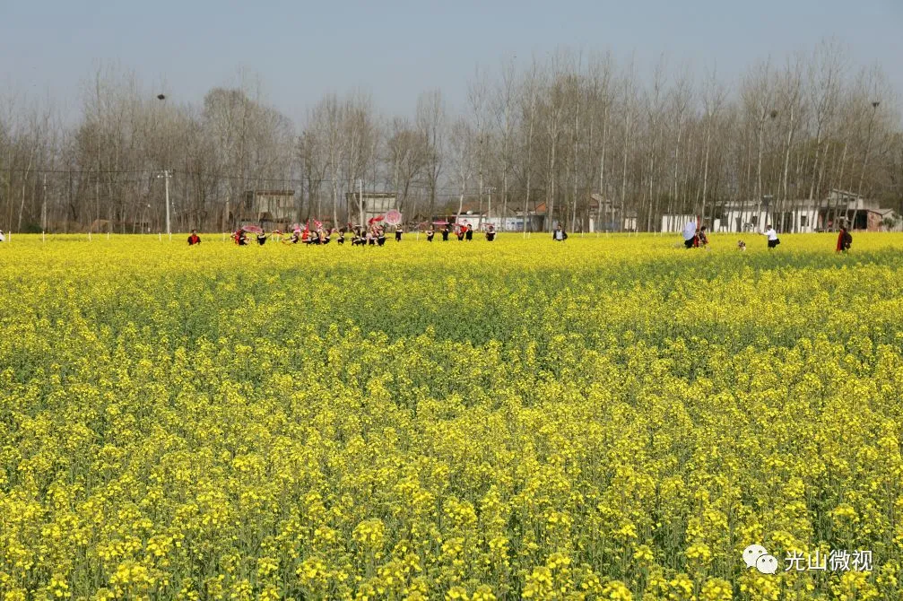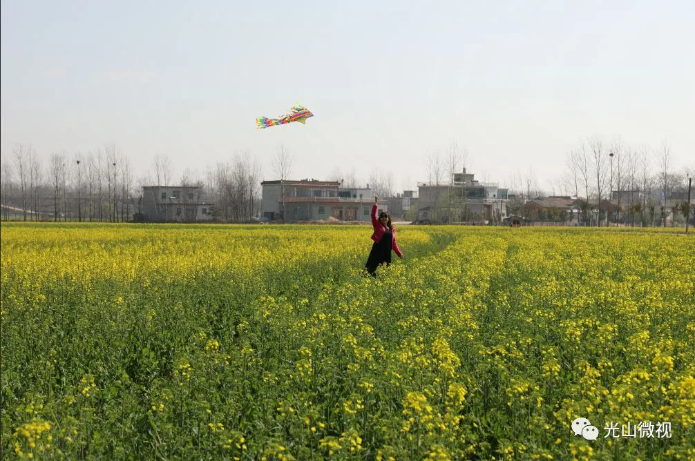 眼下,光山县仙居乡万亩油菜田里,金灿灿的油菜花竞相盛开,金黄色的花海在广阔的田园里显得格外美丽,吸引了众多游客前来休闲观赏。可让记者感到既美不胜收,又热闹无比的还有油菜花田园里游人们放风筝和模特秀的表演。我们先看一段视频,欣赏一下这田园里热闹的场景吧。