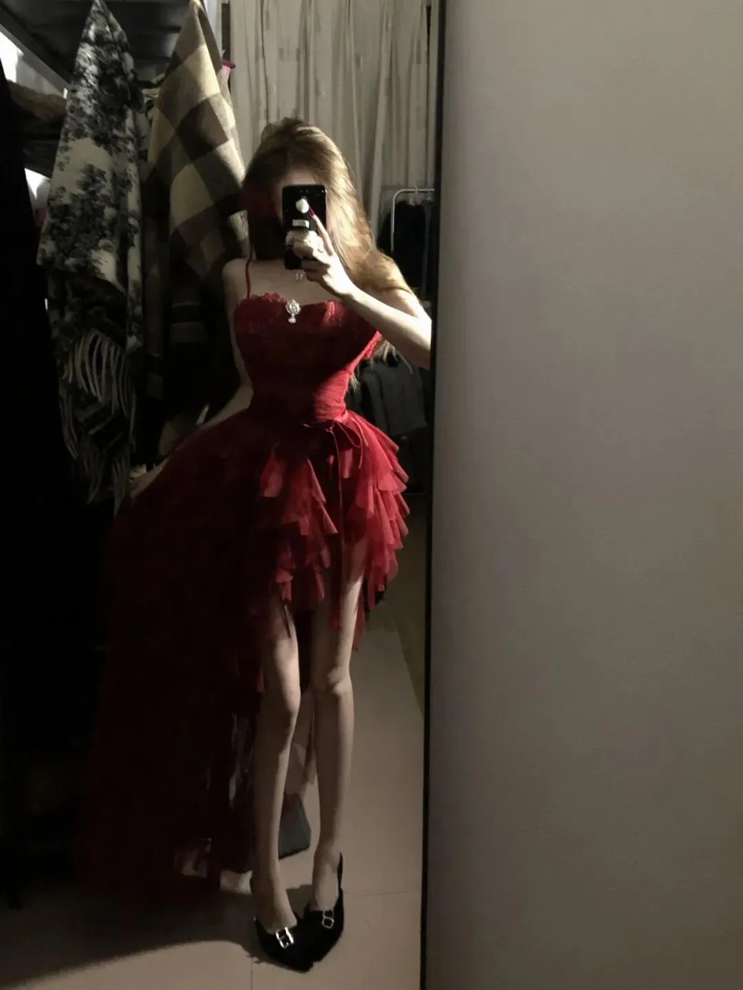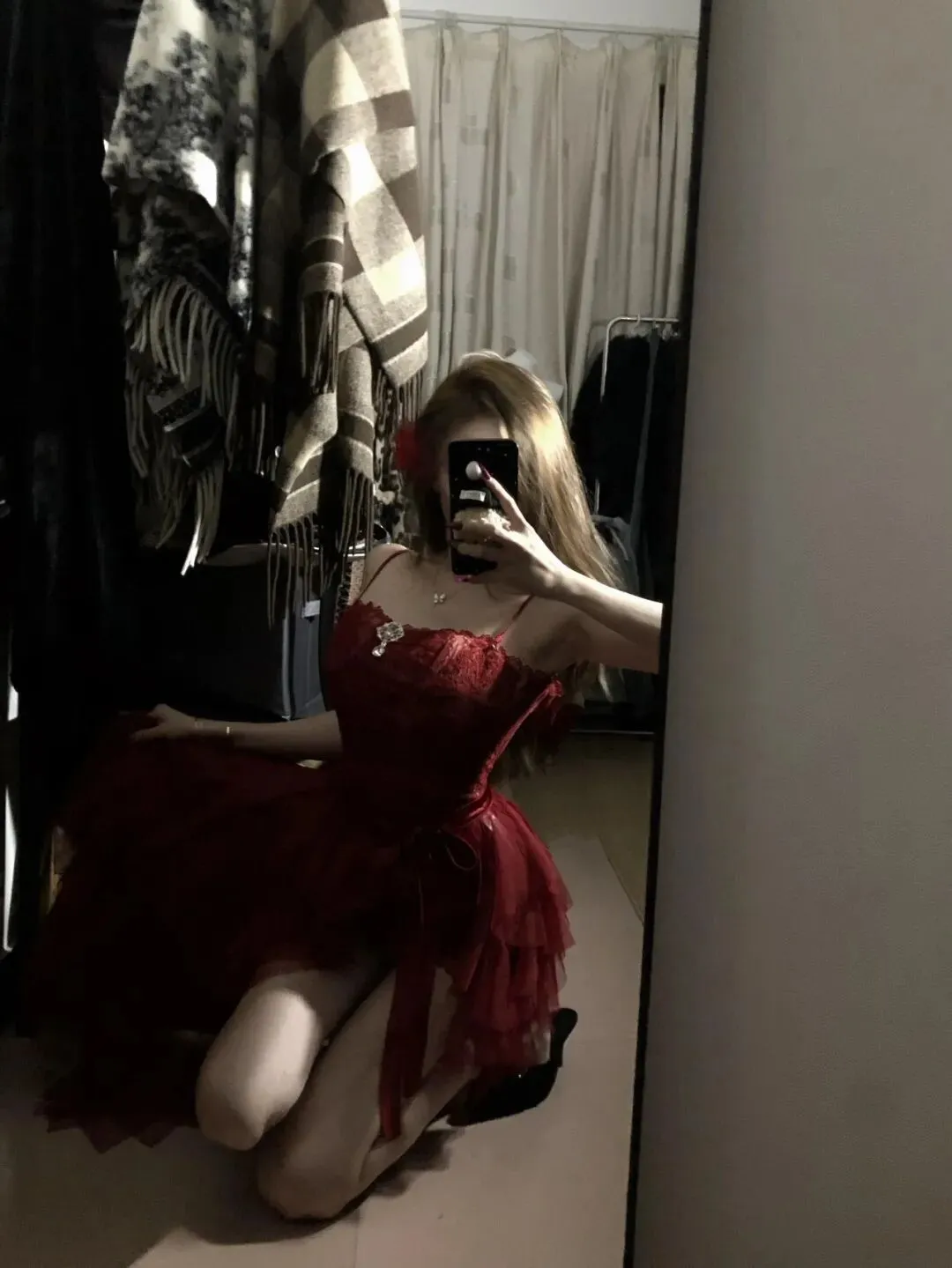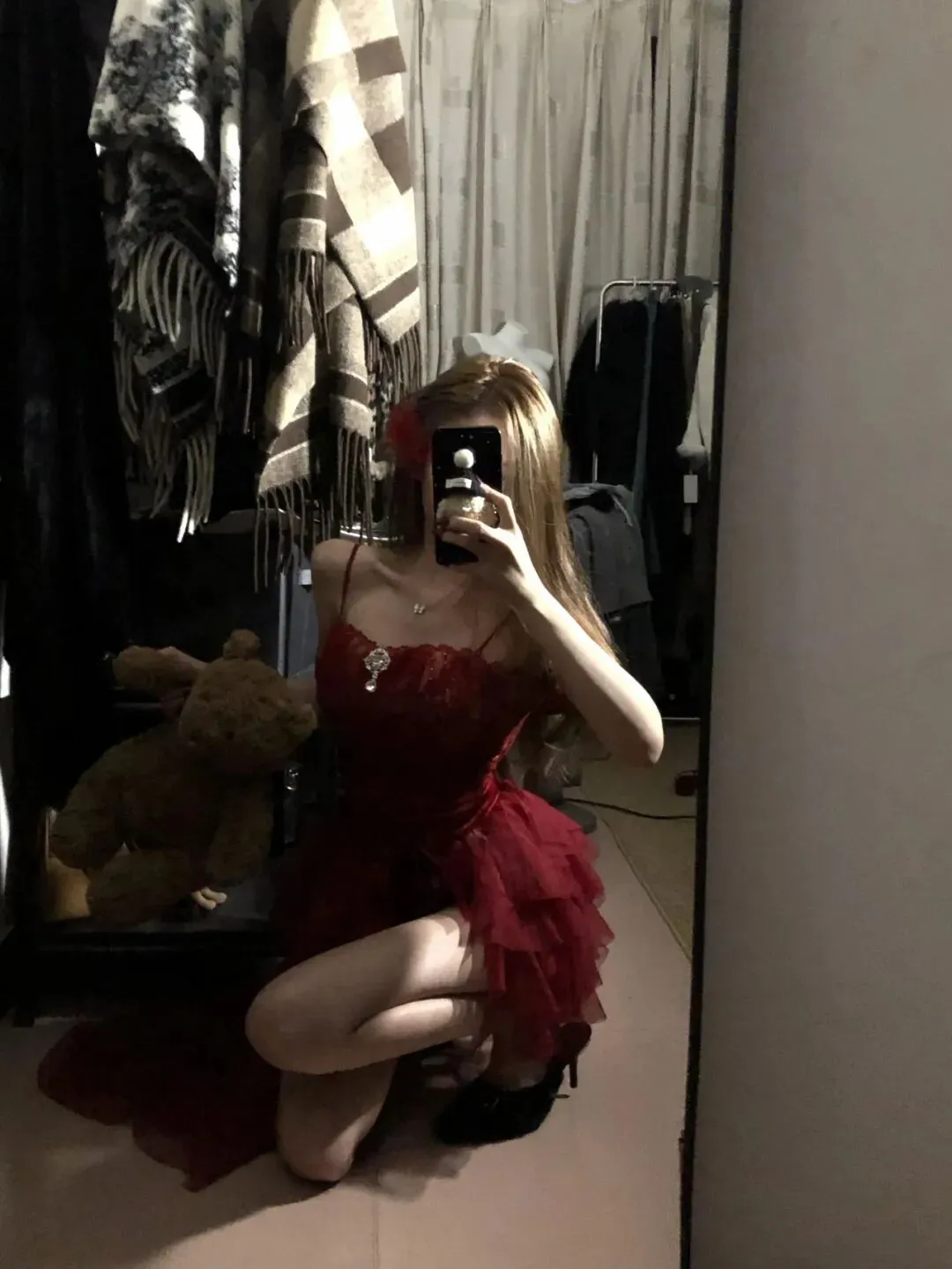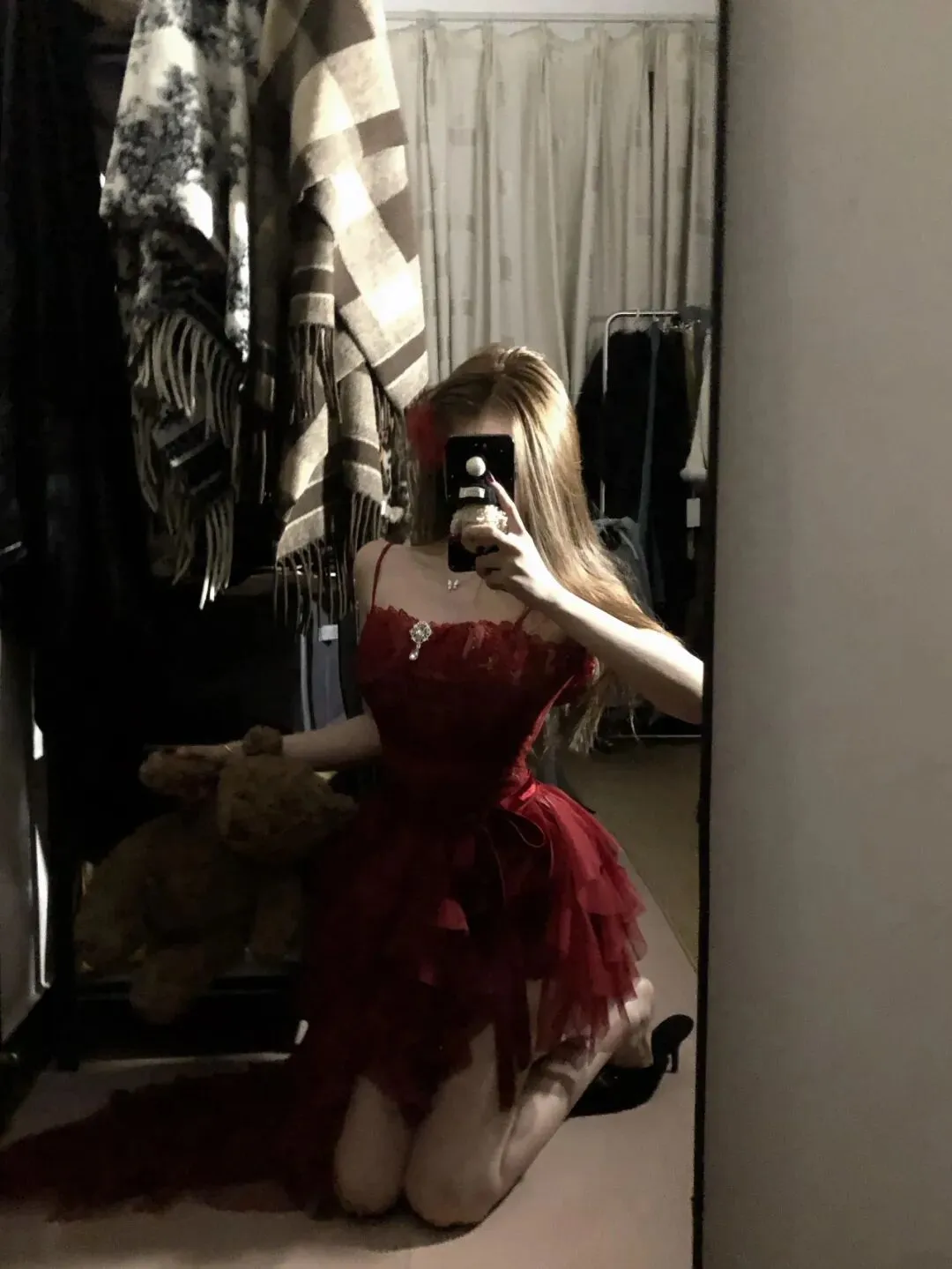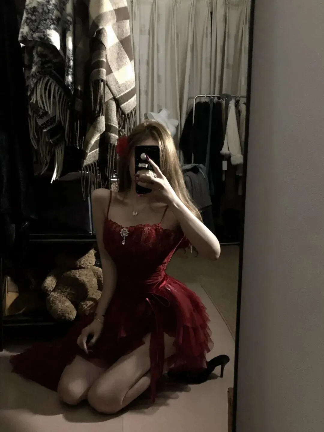 #红色蕾丝裙#纯欲风#氛围感拍照#居家自拍#拍照姿势合集#小个子穿搭#甜酷辣妹