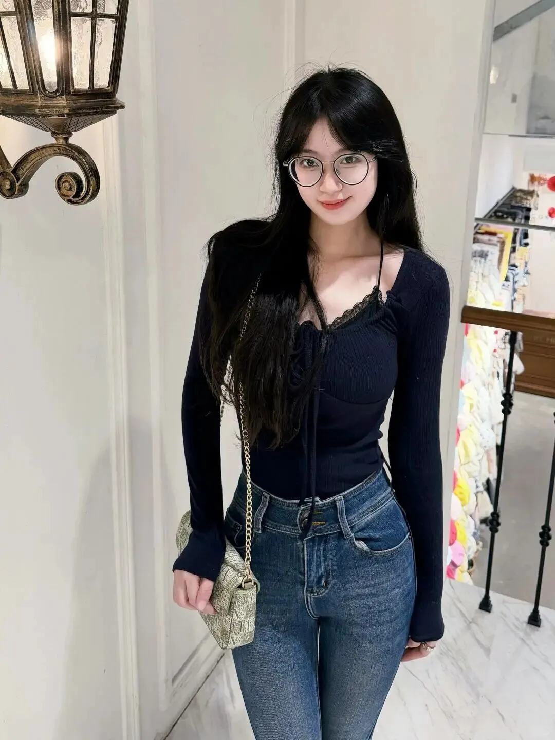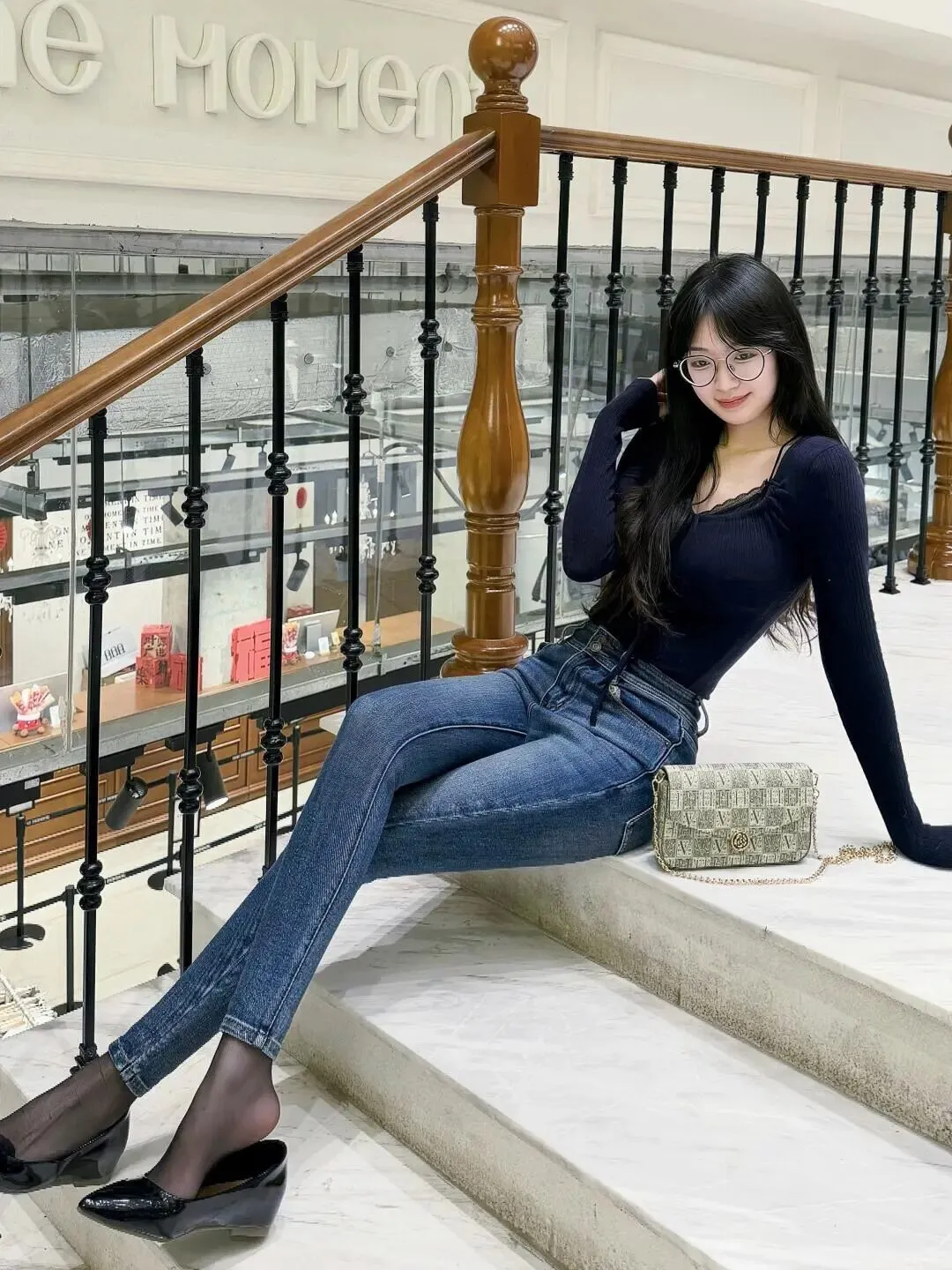 最近和crush约会的穿搭被闺蜜追着要链接!这套真的是温柔又带点小性感的本命约会装~软乎乎的黑蕾丝边针织衫,贴身版型刚好勾勒出好看的线条,不会太暴露却自带氛围感;高腰紧身牛仔裤把腿型修饰得超顺,显高又显瘦,完全不挑身材;重点是这双薄灰丝袜,瞬间把温柔感拉满,和黑色尖头低跟鞋搭配,细节里都是小心机~上周穿这套去商场约会,连路过的小姐姐都忍不住多看两眼,男友更是全程黏着我🥰 这种不费力的时髦感,真的太适合见男友啦!