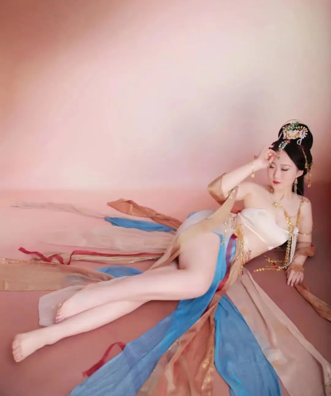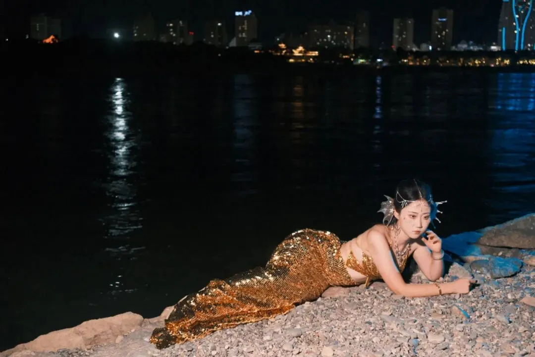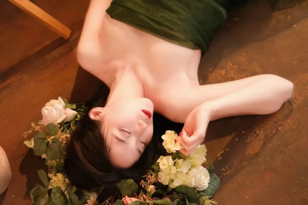 红色蕾丝吊带裙 + 拖尾设计,6 个拍照姿势,复古甜妹,惊艳又耐看