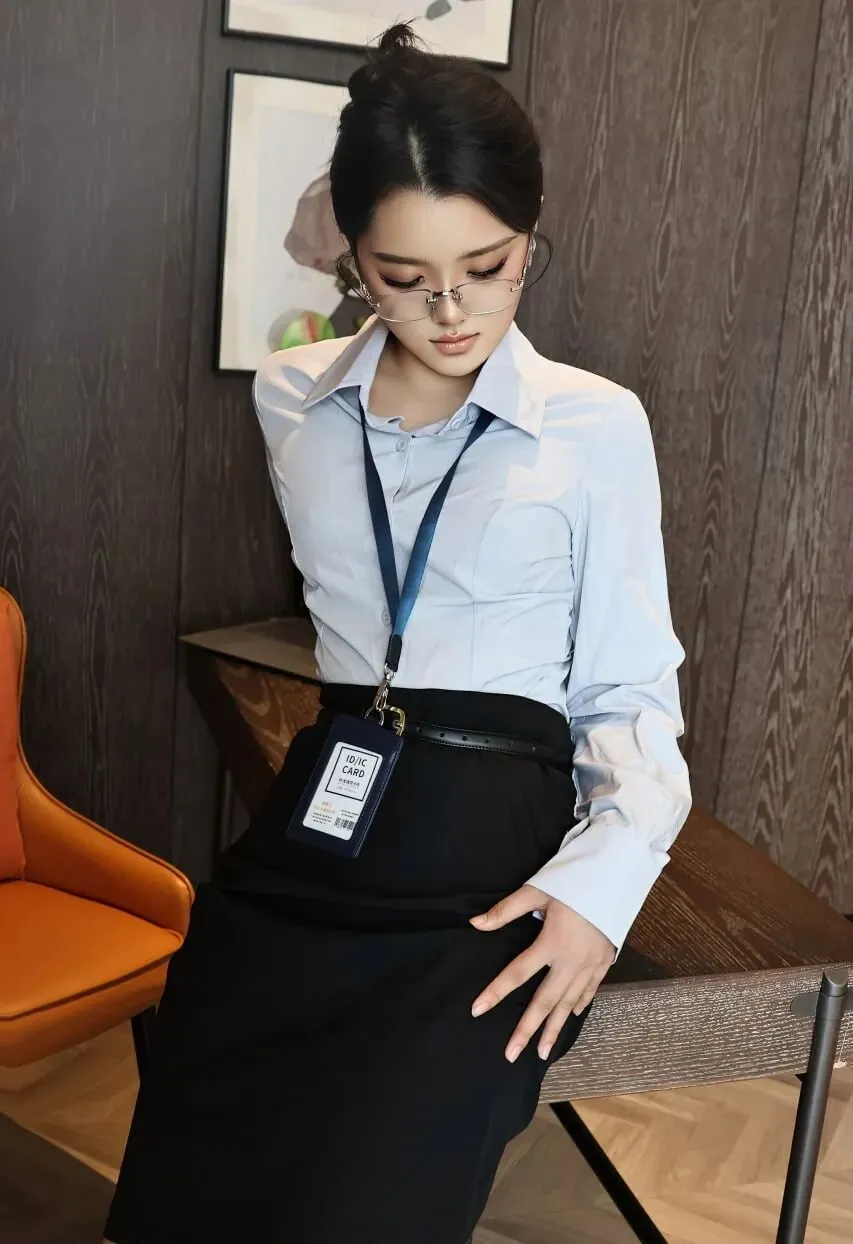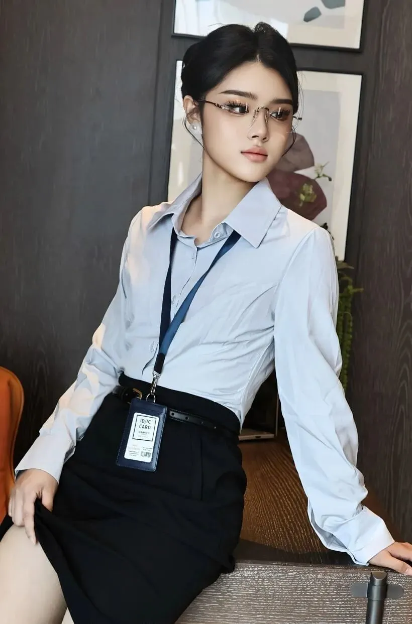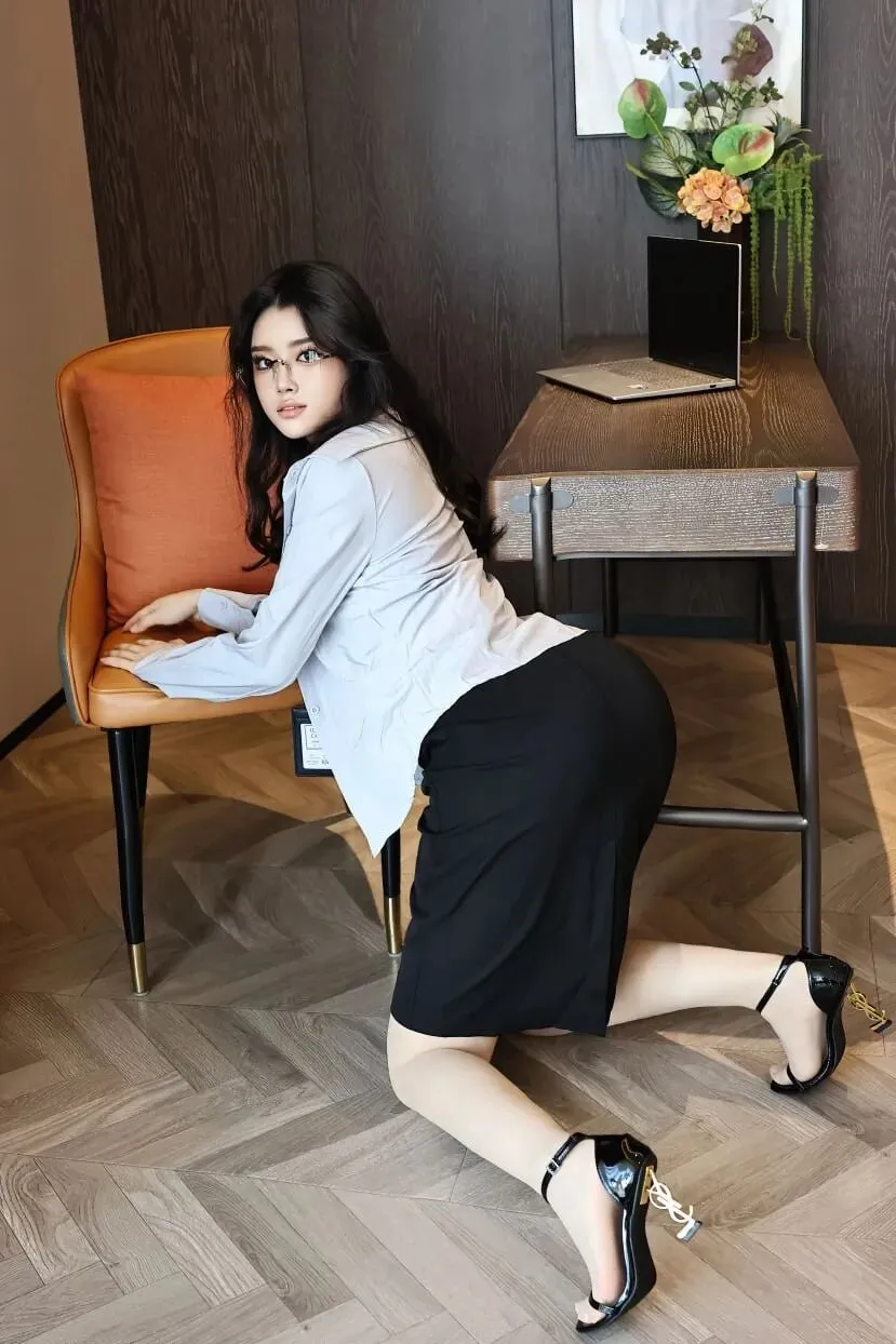 黑色蕾丝领衬衫 + 黑丝,5 个拍照姿势,纯欲辣妹,上镜又耐看
