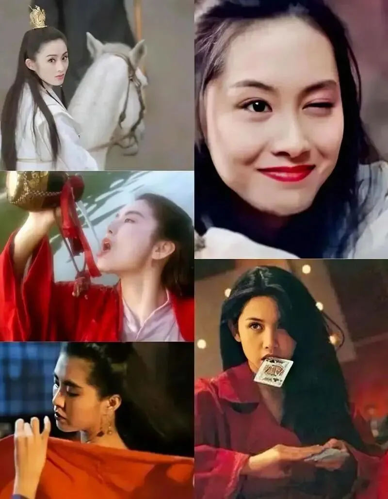 祖贤穿衣,青霞饮酒,朱茵眨眼,张敏回头