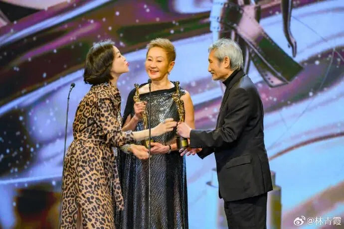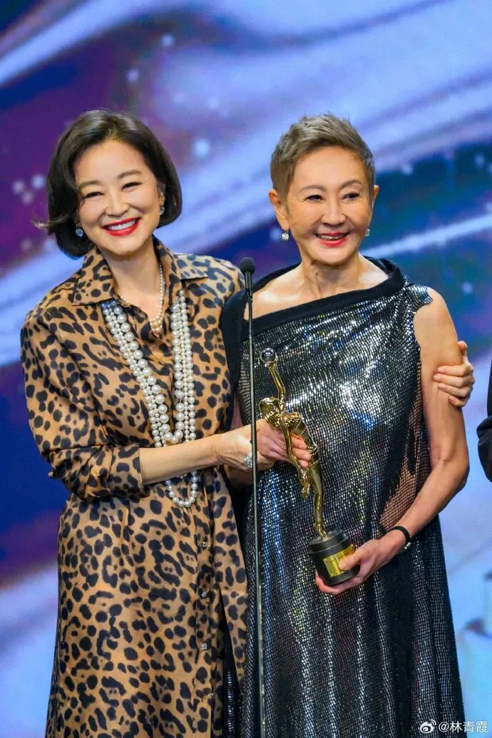 发现有一组照片很有意思。这是2025年4月,她参加香港金像奖的颁奖典礼。