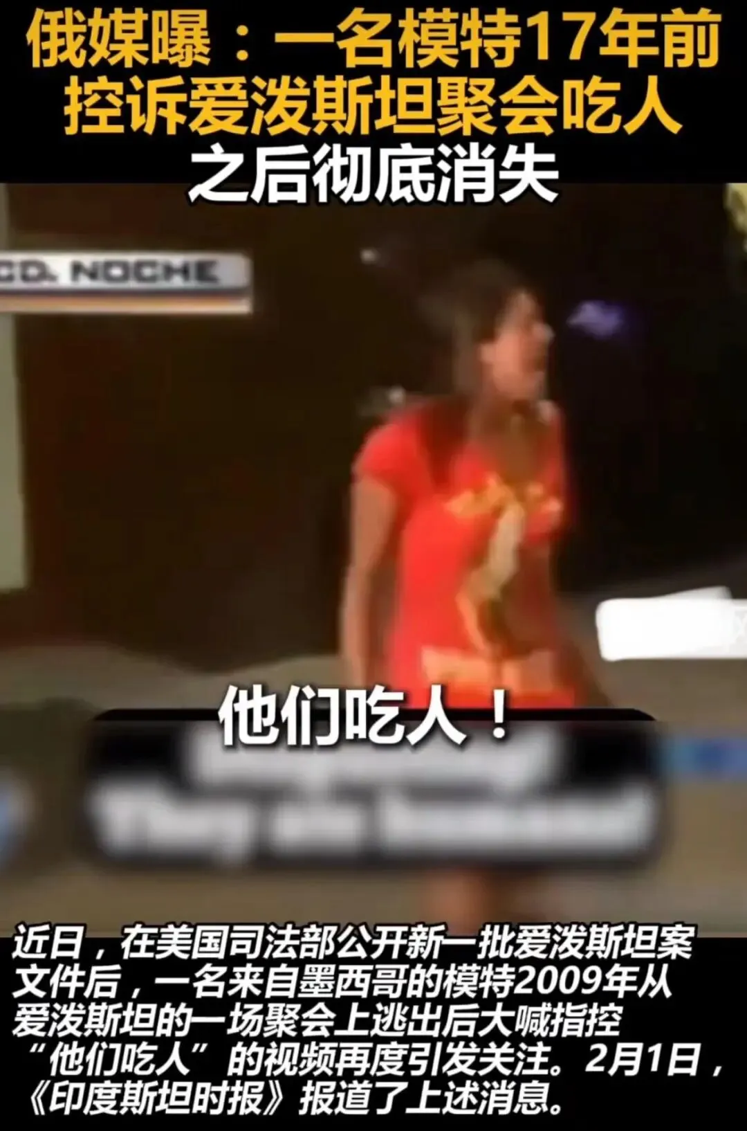 2009年,墨西哥蒙特雷的菲斯塔酒店外,一个21岁的模特在街头歇斯底里地尖叫:“他们在吃人!他们在吃孩子!”她的T恤上印着“yum-yum”(好吃-好吃),衣衫撕裂,眼神癫狂。