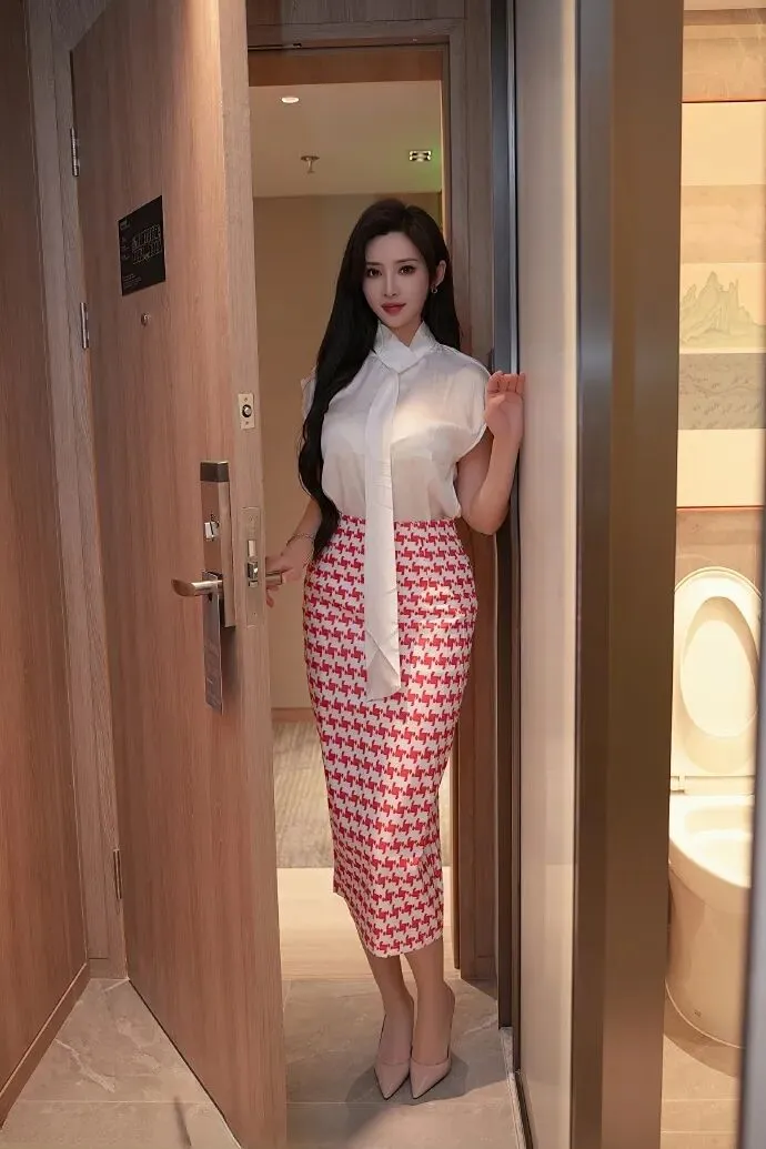 性感模特周妍希,纤腰翘臀,红裙白衬衫展现完美曲线,性感又知性!