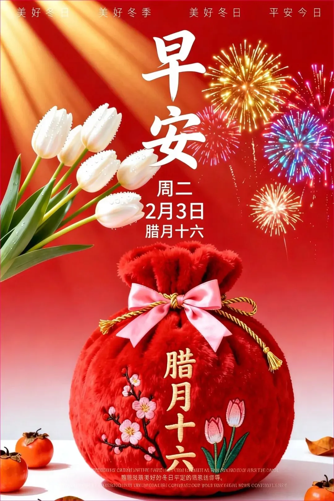 2月3日漂亮早安图片,早上好暖心祝福图片带字带问候语录,愿我们天天开心快乐!