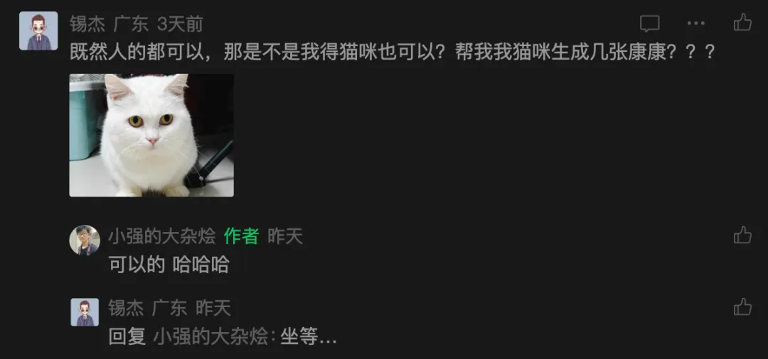 是不是有点熟悉,没错,就是用之前的提示词改的,改成猫咪就是了,背景、风格啥的不变。