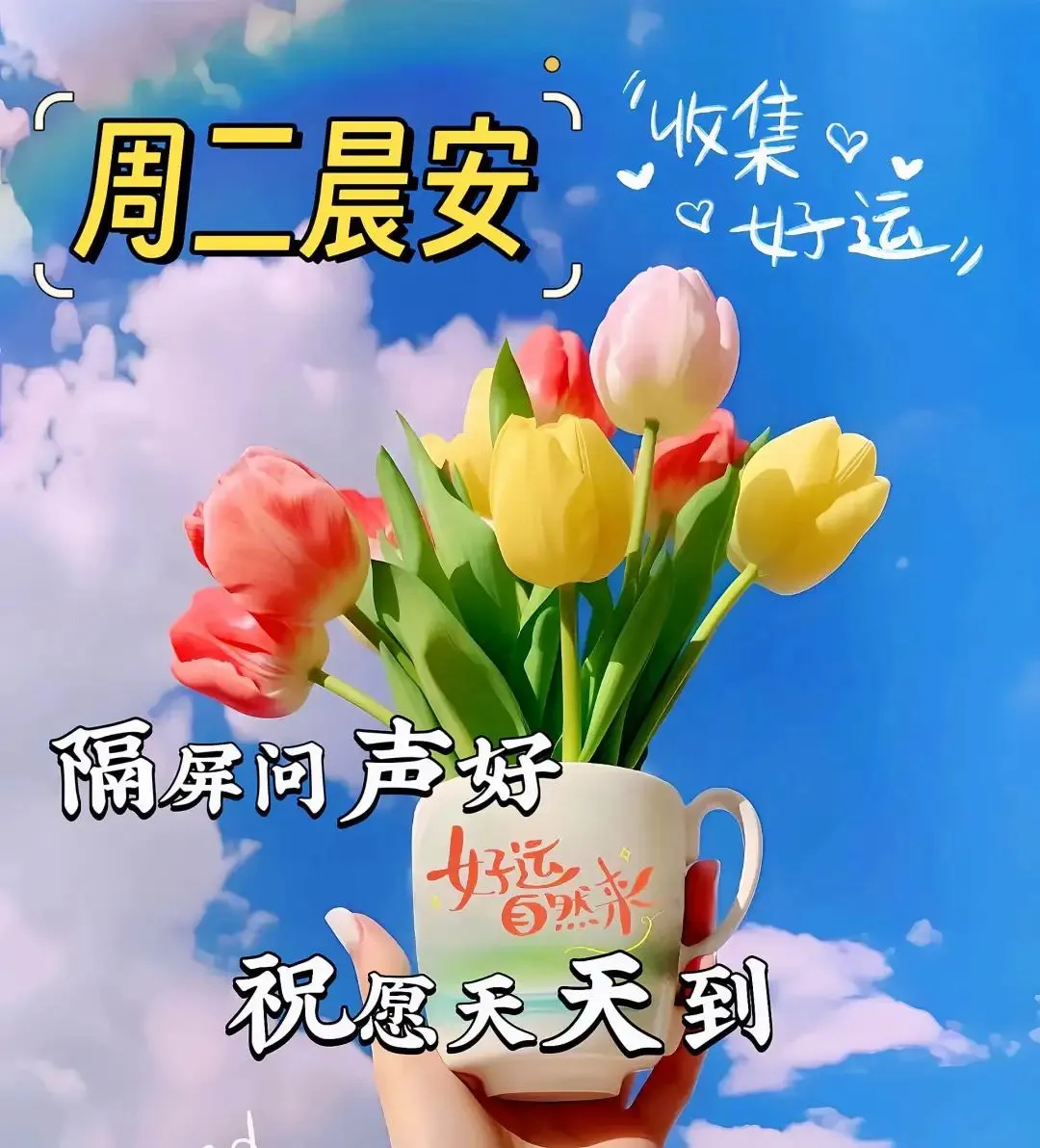 打开手机,问声好。健健康康,身体好;快快乐乐,没烦恼;平平安安,天天好;幸福快乐,永不老。永远开心!祝大家工作顺利,早餐愉快,早上好!🌹🙏❤️🌞😄🌈人生有四季,岁月有花香。不管生活怎么对待我们。我们都要心怀阳光,感恩知足,不求所有的日子都风光,唯愿所有的日子都健康。开心愉快,祝早安!🌹🙏❤️🌞😄🌈人生如书,记载了昨天和今天;岁月如画,描绘了缘分和友谊;问候如诗,赞美了善良和诚实;祝福如歌,唱响了花开和日出。早上好!🌹🙏❤️🌞😄🌈早上好,小鸟歌唱,阳光洒满心房。愿你笑开颜,好运跟随左右。幸福绕你身,快乐快速到。愿你今天开心又美好。早安🌹🙏❤️🌞😄🌈早上好,用快乐的心情,迎接温暖的朝阳;用乐观的心态,拥抱幸福的光芒。愿生活充满阳光,愿身体平安健康,愿心情快乐舒畅,愿事业更加辉煌!🌹🙏❤️🌞😄🌈朝阳送来祝福,早安问候相伴。笑容灿烂如花朵,快乐跃动在心底。奋斗追求理想,努力追逐成功。早上好,愿你的早晨充满幸福和满足!🌹🙏❤️🌞😄🌈亲爱的朋友早上好!我收集了世界上所有的祝愿,送给最牵挂的你,愿你每天。幸福满满,快乐多多,所有的好运都向你报道所有的财运都将你围绕新的一天,开心快乐!🌹🙏❤️🌞😄🌈