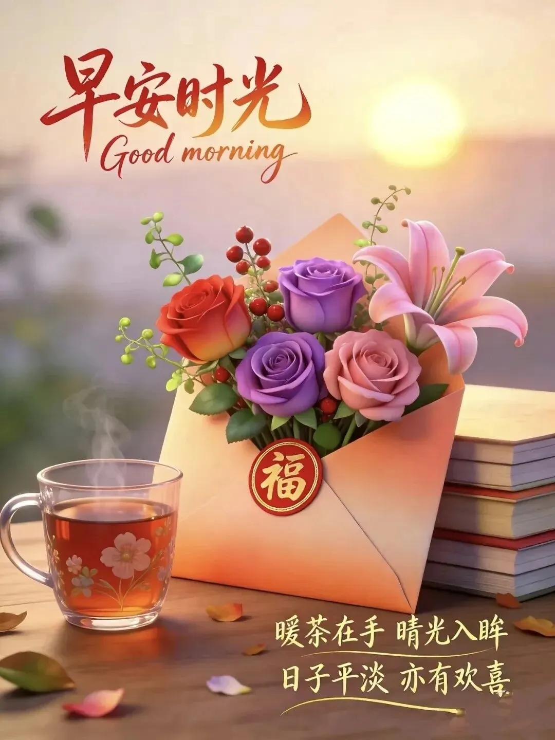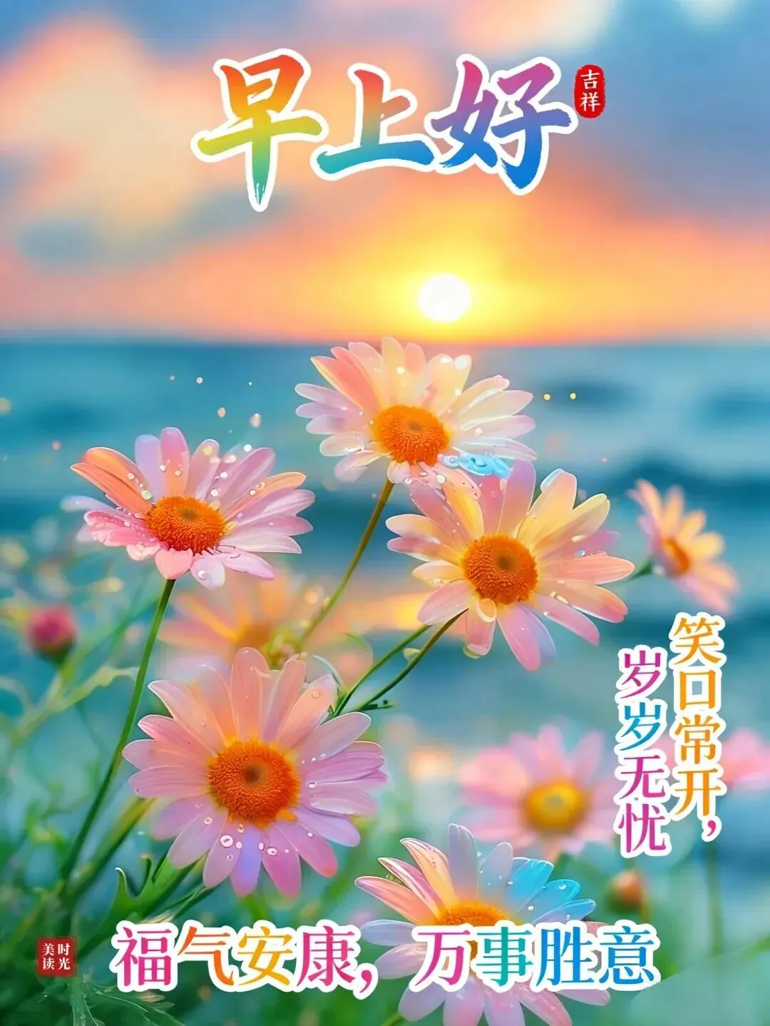 早安,时光匆匆,岁月如梭,愿你一切安好,百岁无忧,岁岁安澜!愿时光温柔以待,愿如意吉祥,幸福安康!