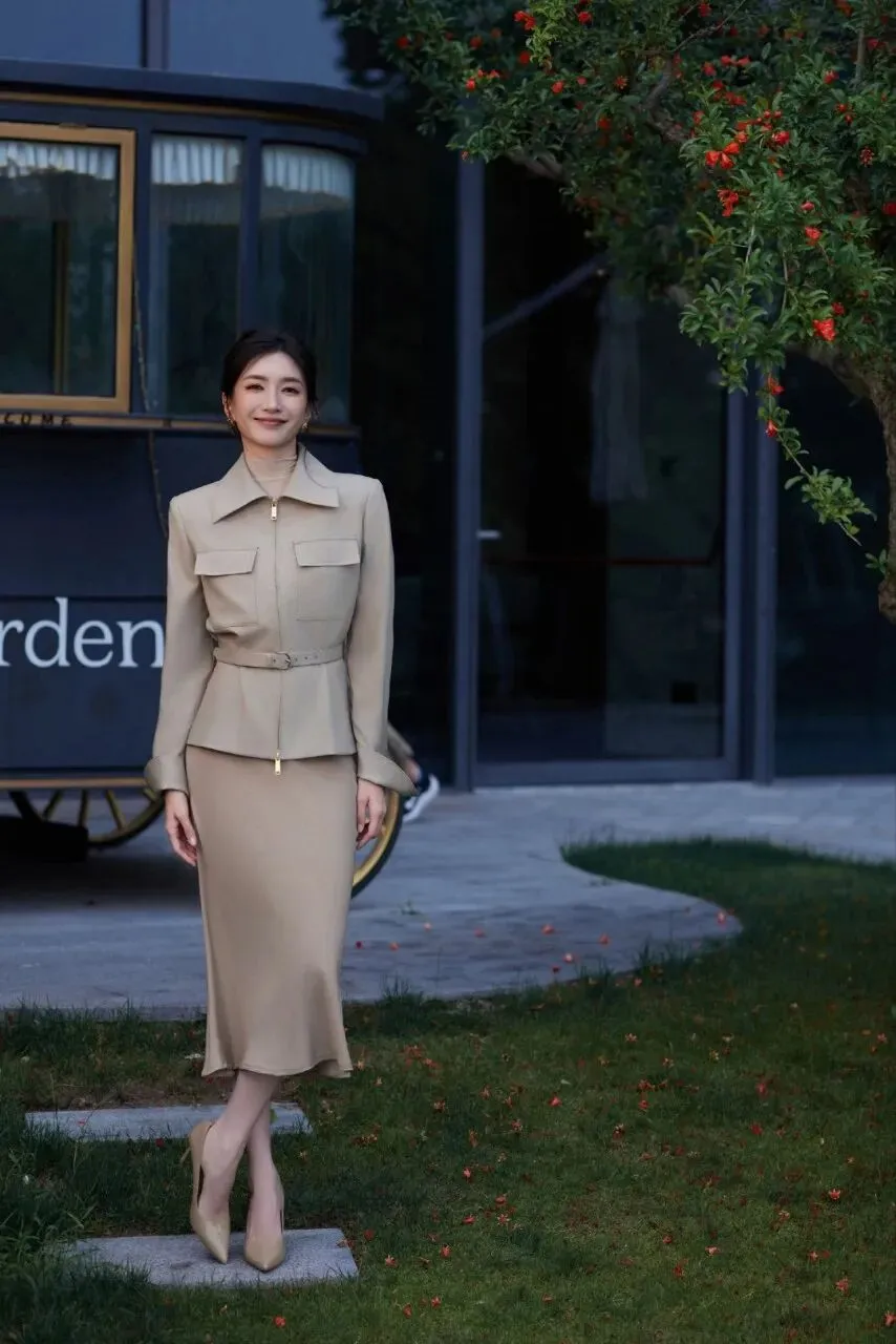 杏色柔影| 蕾丝抹胸勾勒曲线,短裙衬出修长美腿