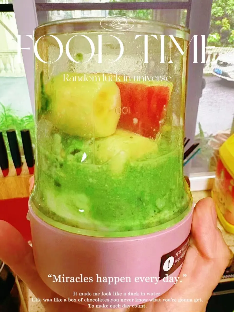- 一杯用羽衣甘蓝、苹果、香蕉打出来的绿色能量汁