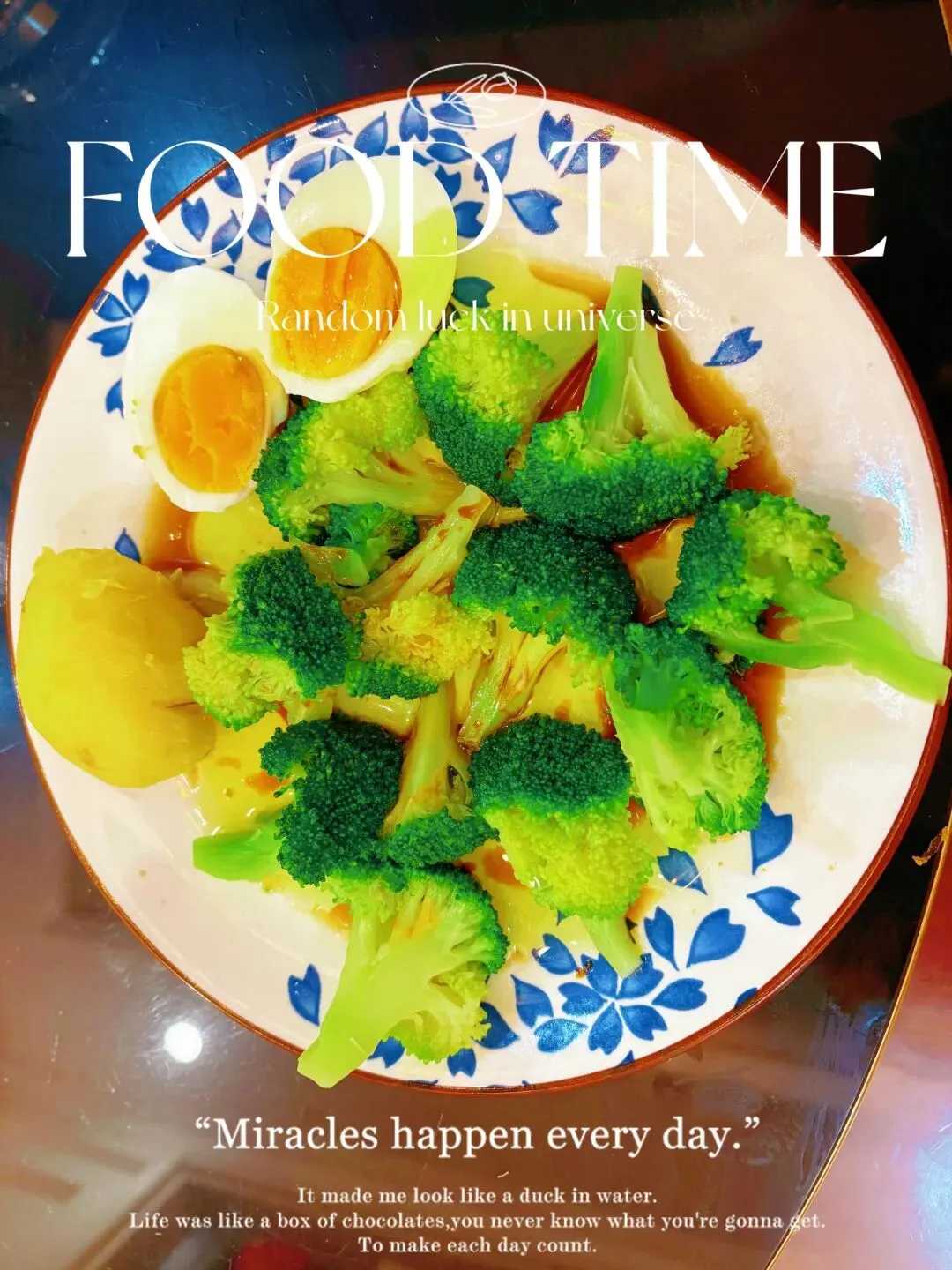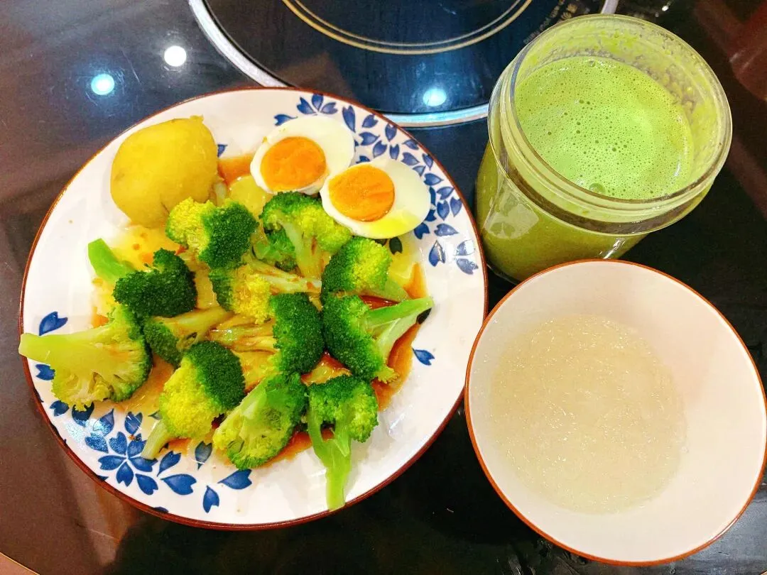 - 清炒西兰花溏心蛋,搭配软糯的蒸土豆