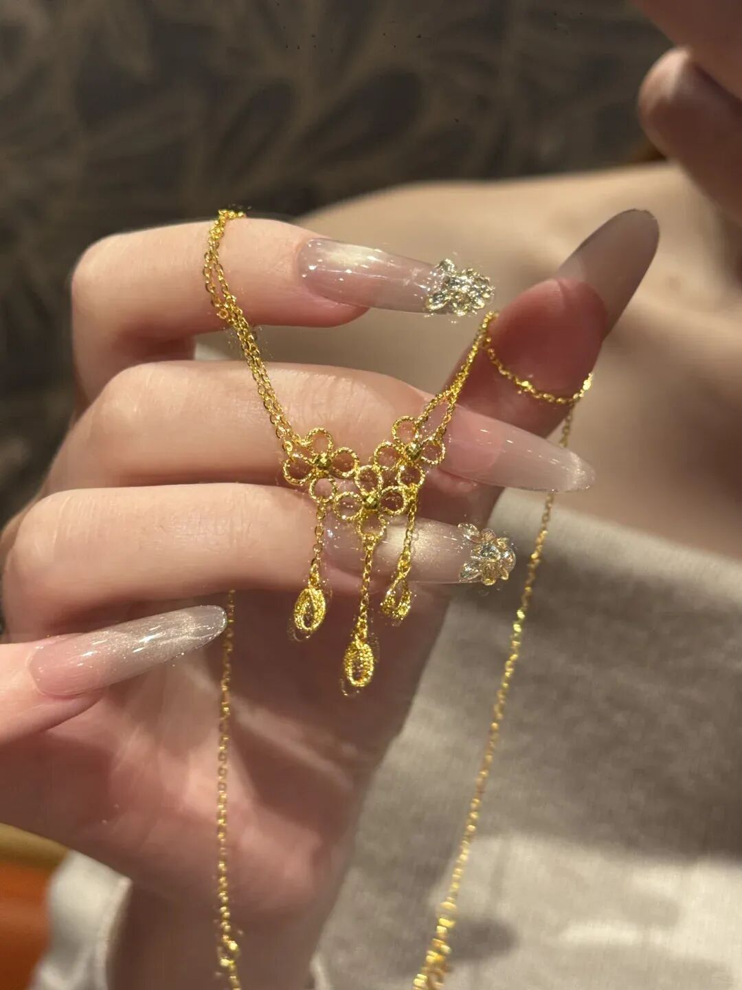 哎,跟你说,能戴这种花丝金项链的姐妹,那审美真的绝了。