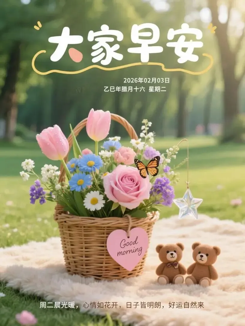 >2月3日周二早安祝福语图片最新的 周二最美的早安祝福美图,周二早安祝福图片大全