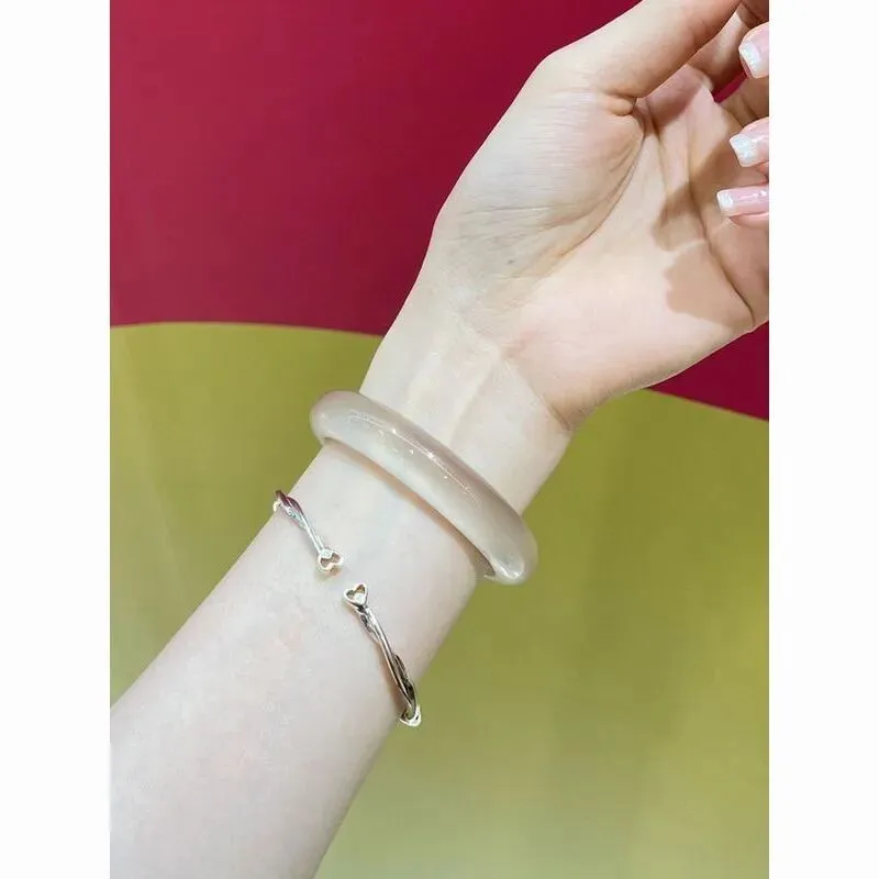 >冰透高冰玛瑙手镯女天然玉髓镯子冰种翡翠玉手镯女款白月光玉镯