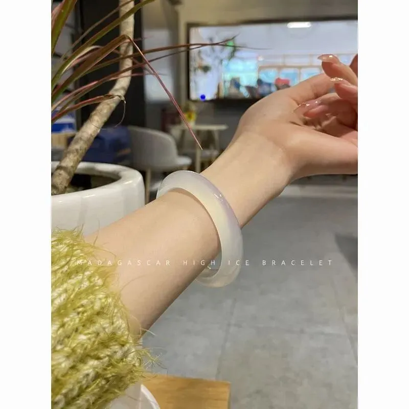 冰透高冰玛瑙手镯女天然玉髓镯子冰种翡翠玉手镯女款白月光玉镯