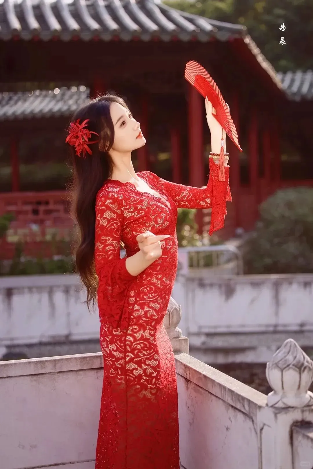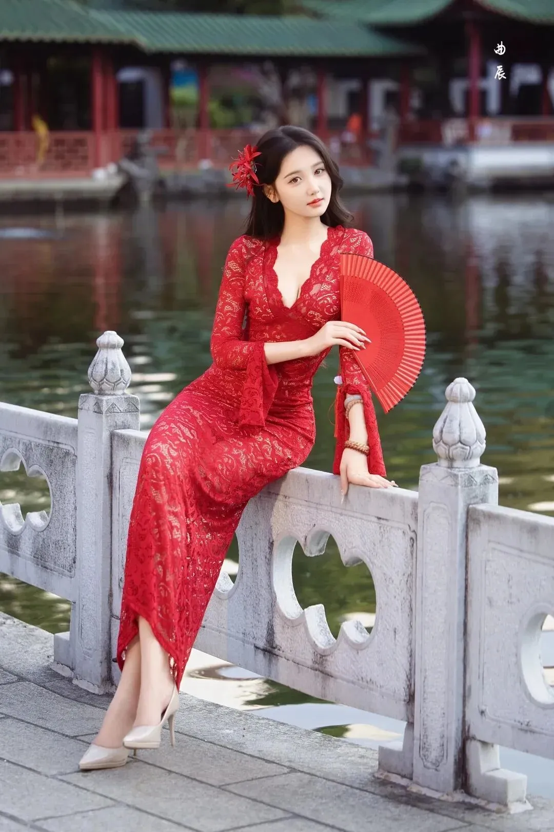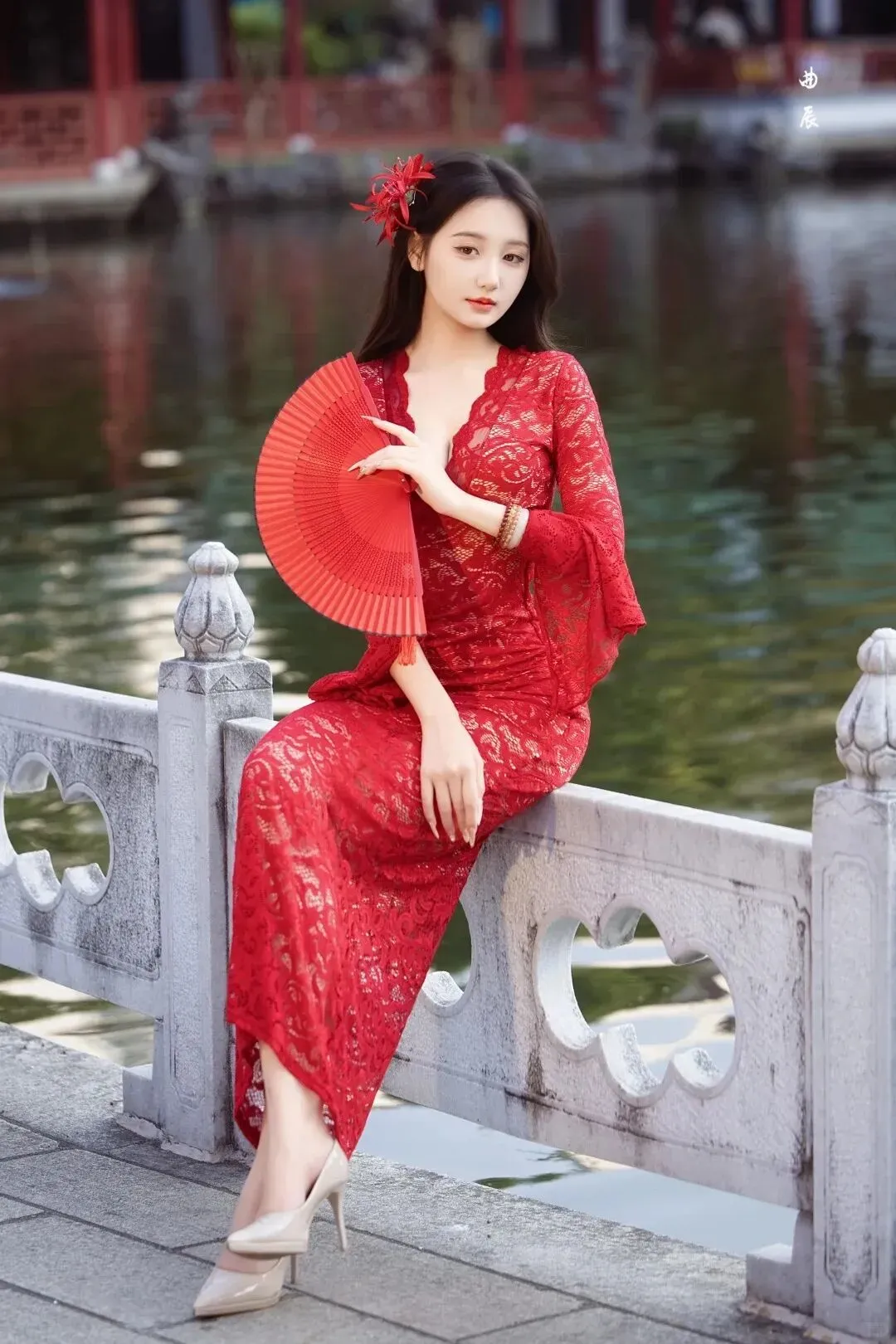这组刷爆朋友圈的红旗袍写真,没有老派旗袍的刻板,却把新中式的惊艳揉进了每一寸蕾丝纹路里。原来传统与现代的碰撞,能让一件衣服美到让人挪不开眼。