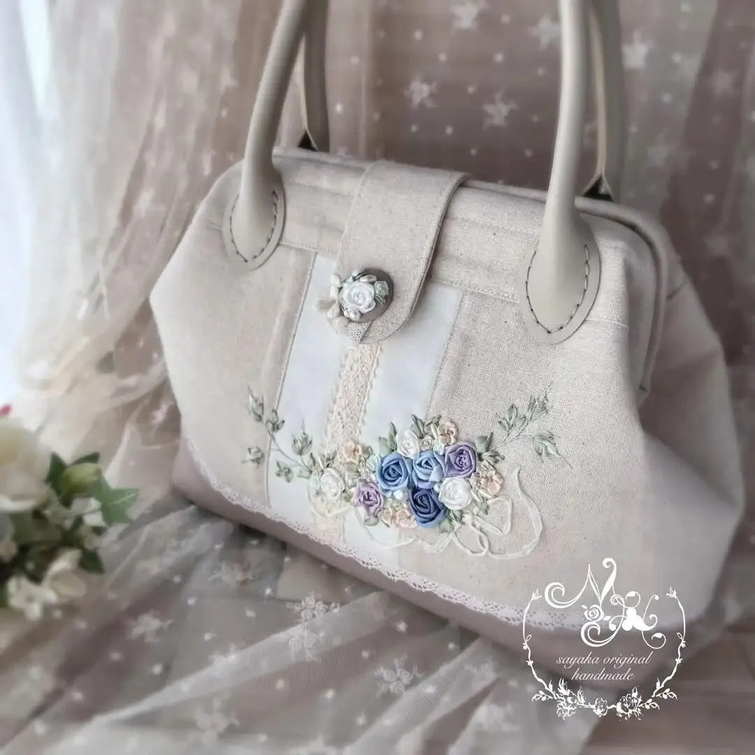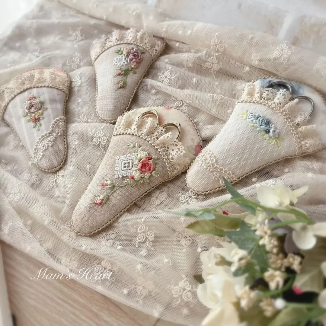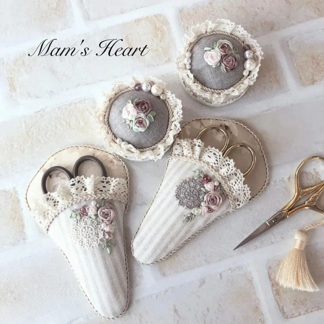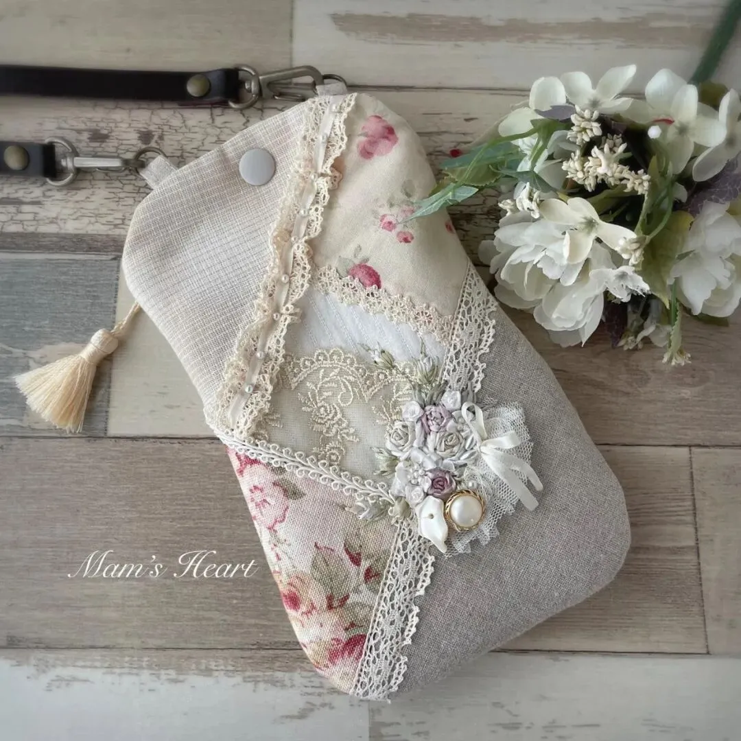 丝带绣折出鲜活花型,亚麻布拼碎花叠层蕾丝,复古昭和甜妹感拉满;珍珠、蝴蝶结巧思点缀,口金包、针插、小发饰件件精致,手工的温度全在细节里。