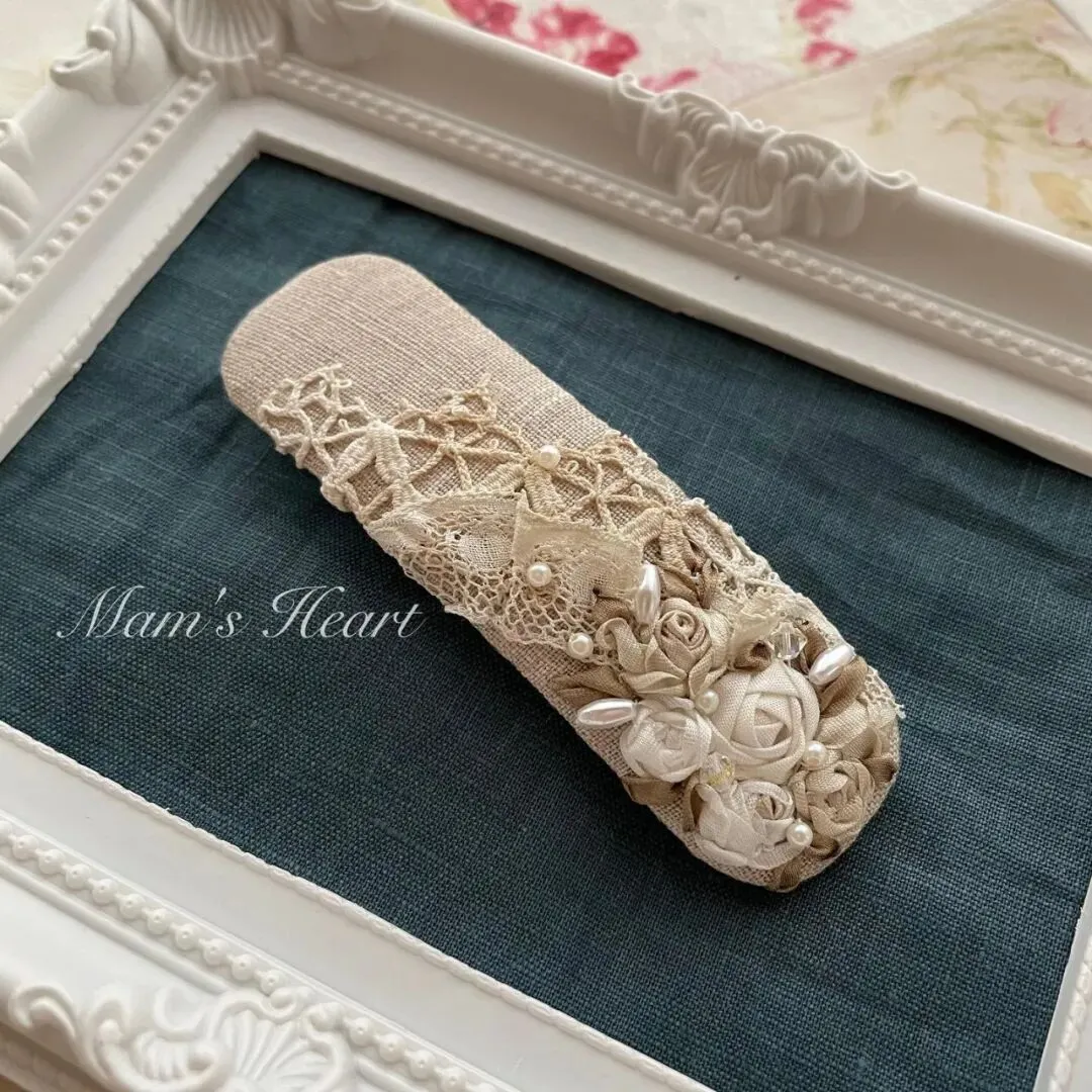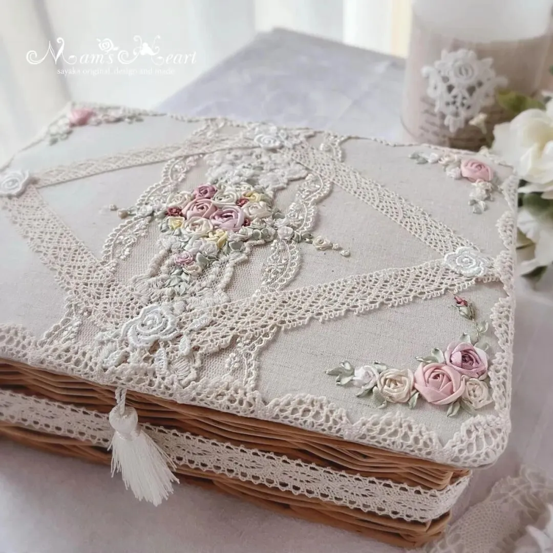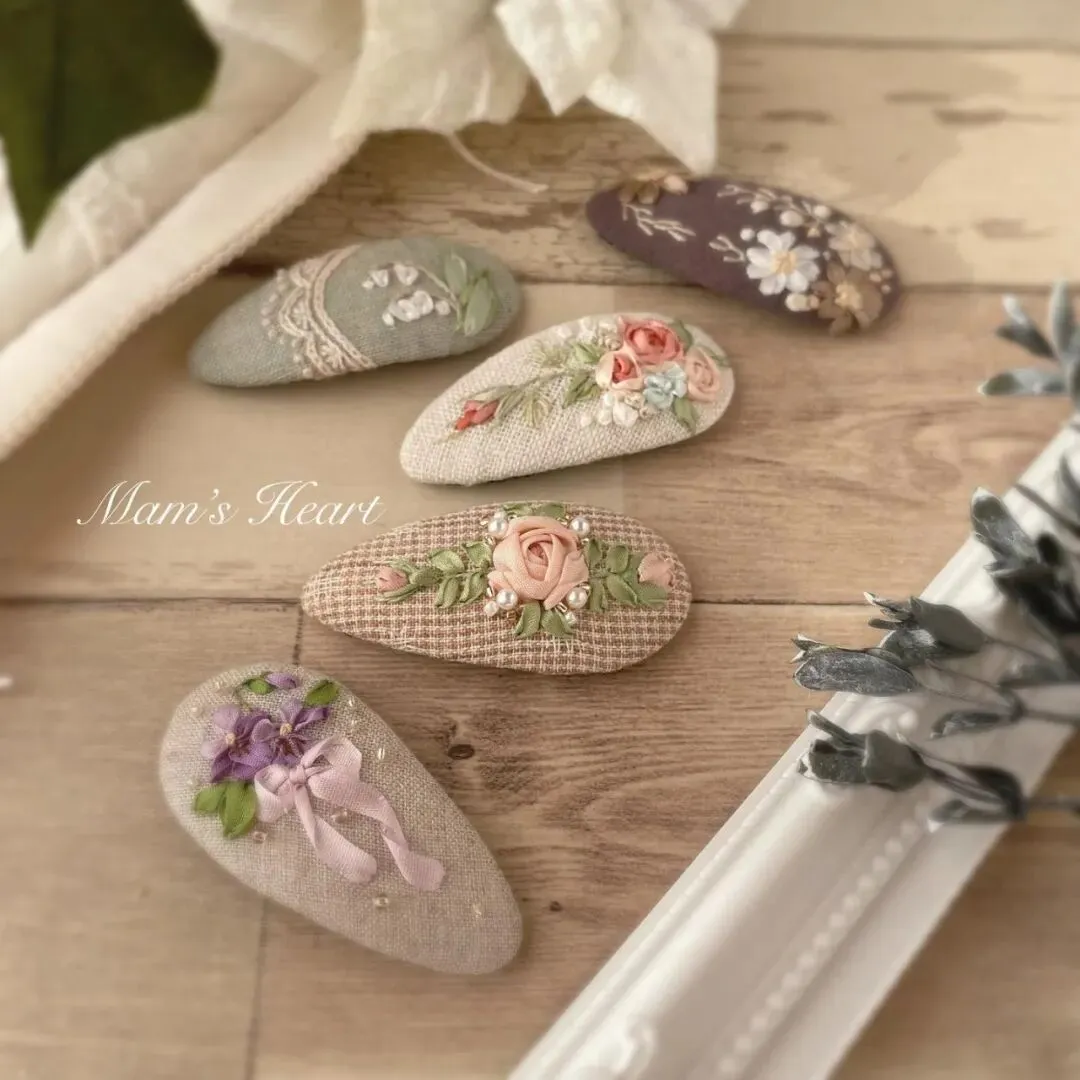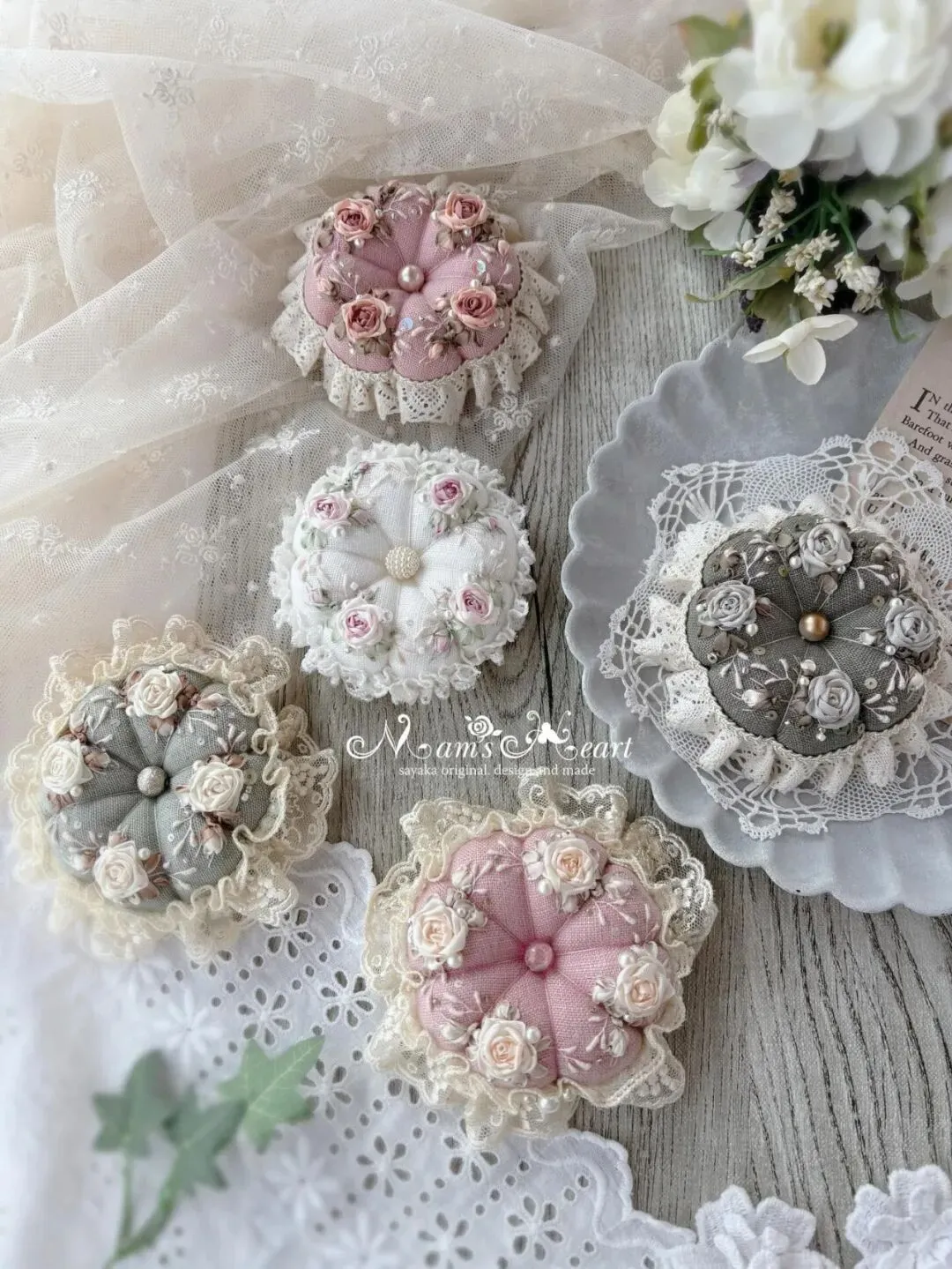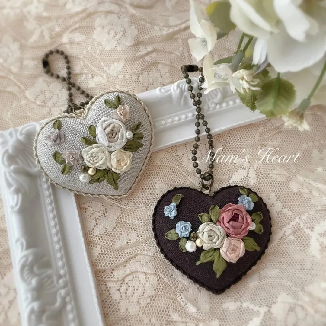丝带绣折出鲜活花型,亚麻布拼碎花叠层蕾丝,复古昭和甜妹感拉满;珍珠、蝴蝶结巧思点缀,口金包、针插、小发饰件件精致,手工的温度全在细节里。