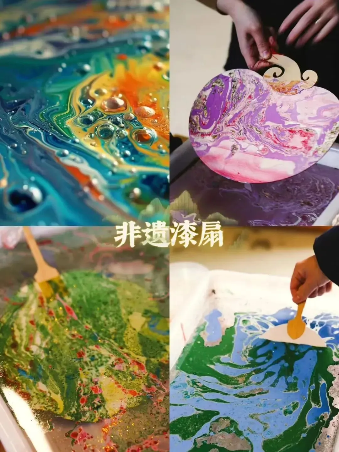 浮水画成扇,每一把都独一无二。在墨色流淌间,体验随性之美,送给优雅的自己。