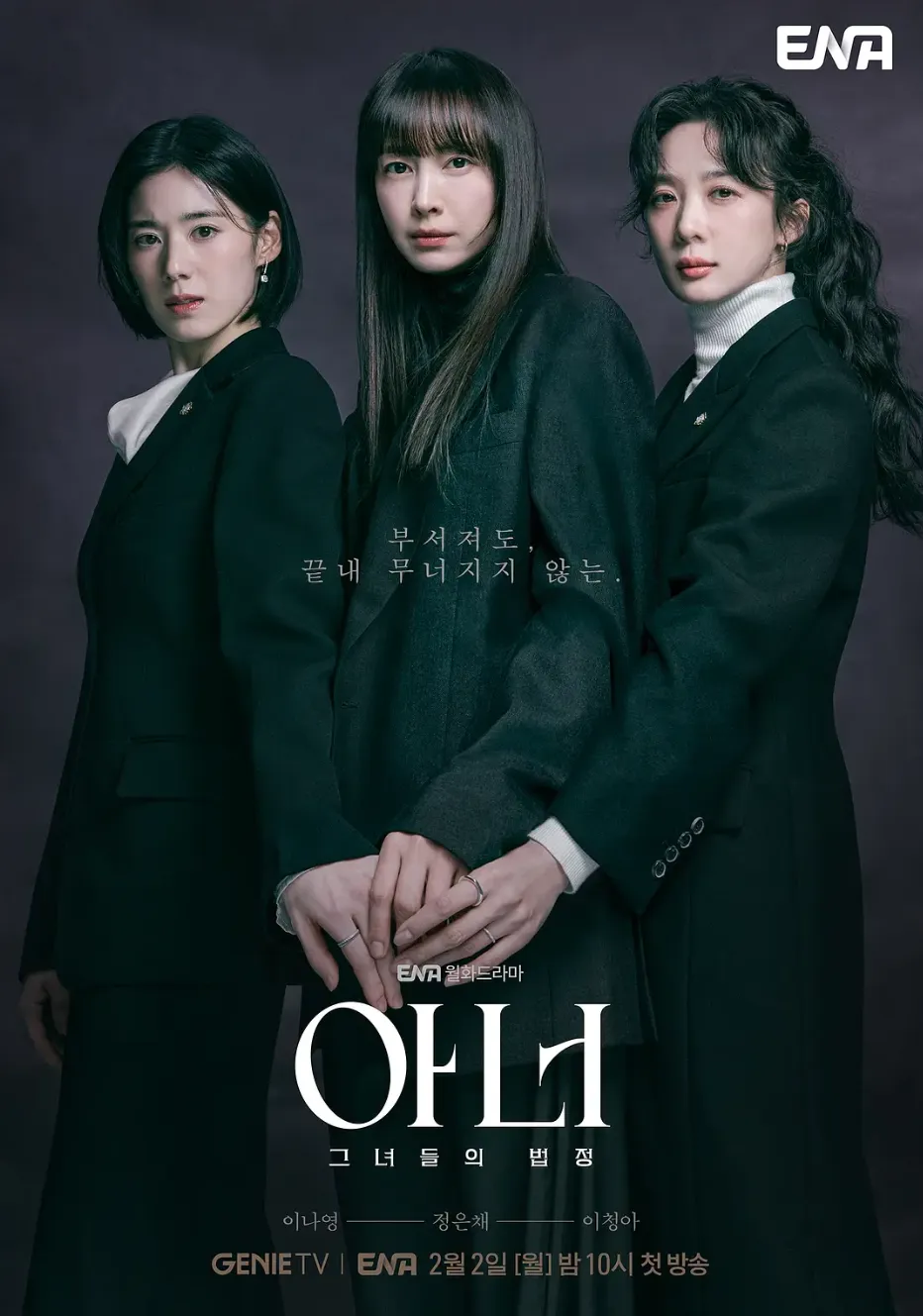 如果你偏爱女性群像剧,不喜欢悬浮的“大女主爽剧”,想看真实的女性成长与并肩作战,这部剧绝对值得一看;如果你喜欢烧脑的律政悬疑题材,偏爱逻辑在线的反转、严谨的庭审戏,它也能满足你的期待;如果你是李奈映、郑恩彩、李清娥三位演员的粉丝,更是不能错过她们同框飙戏的名场面。
